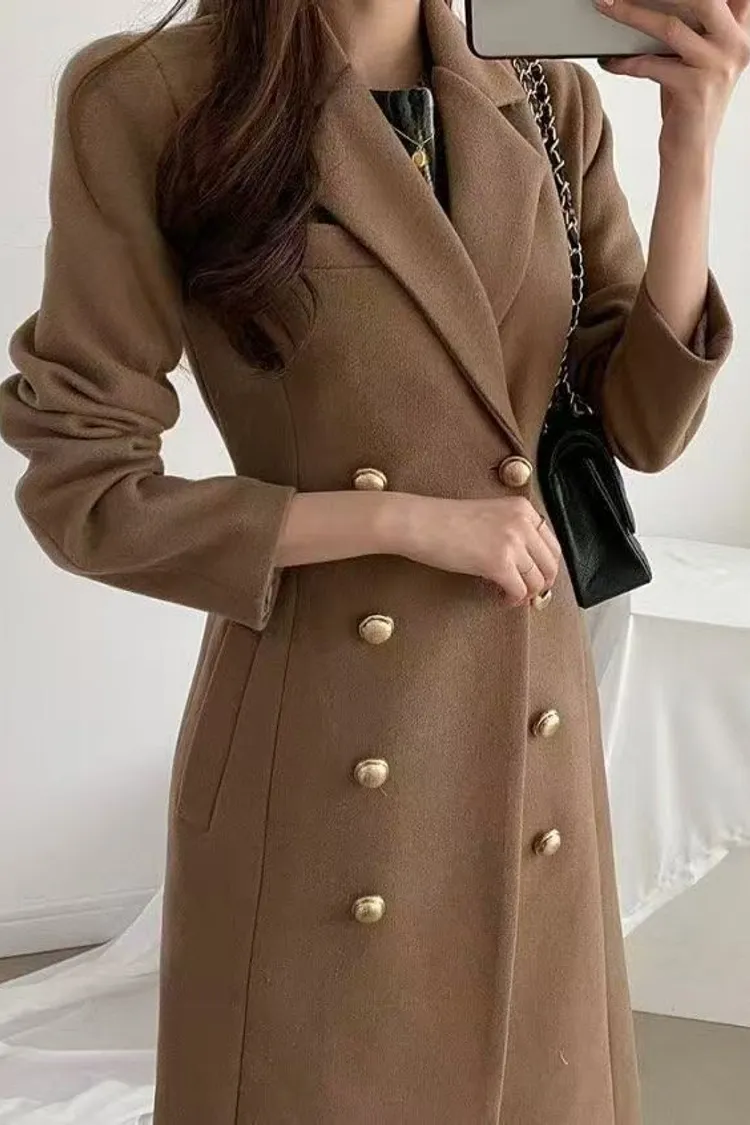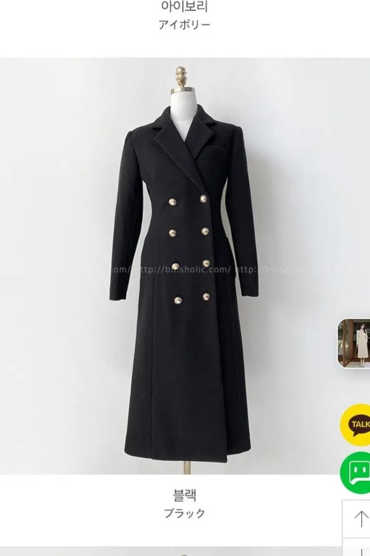 韓國代購 雙排扣長版大衣
