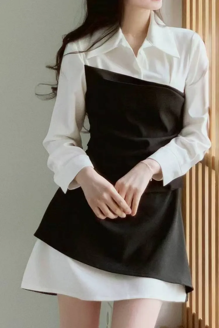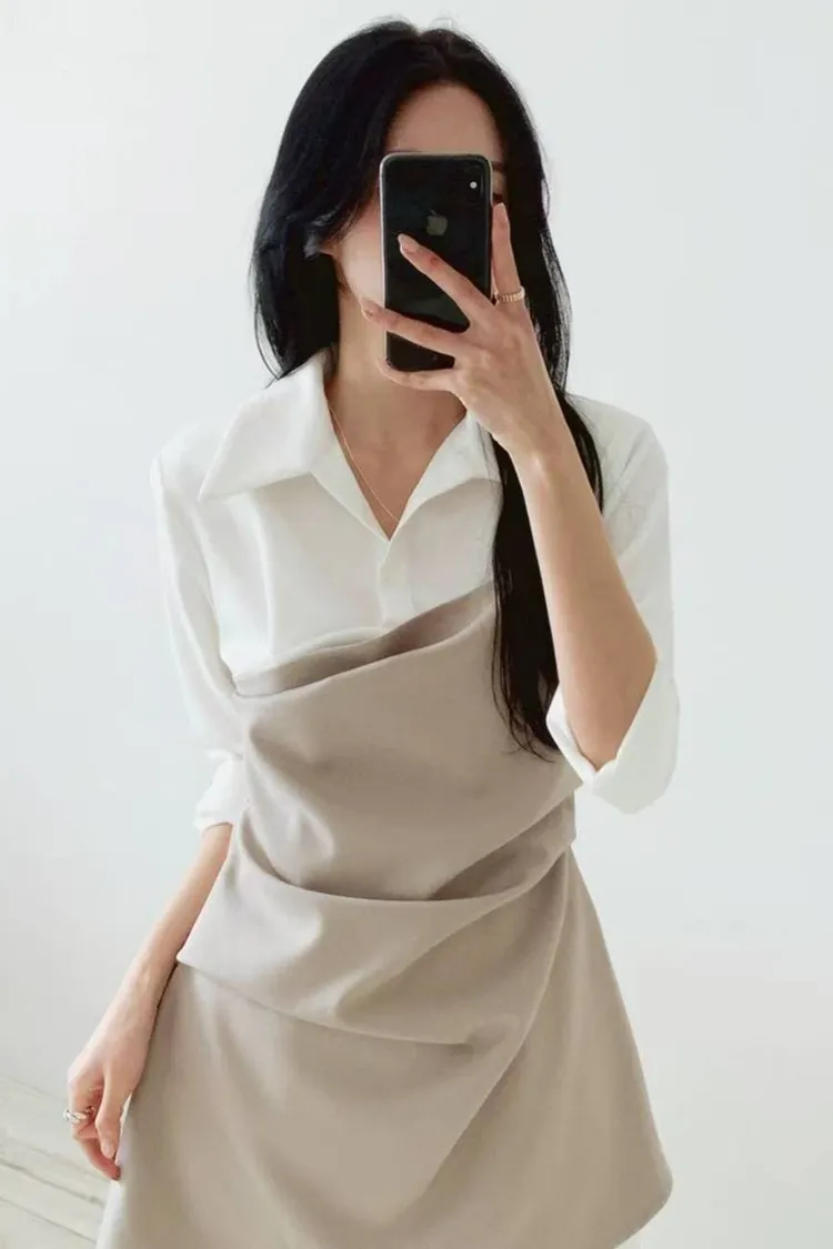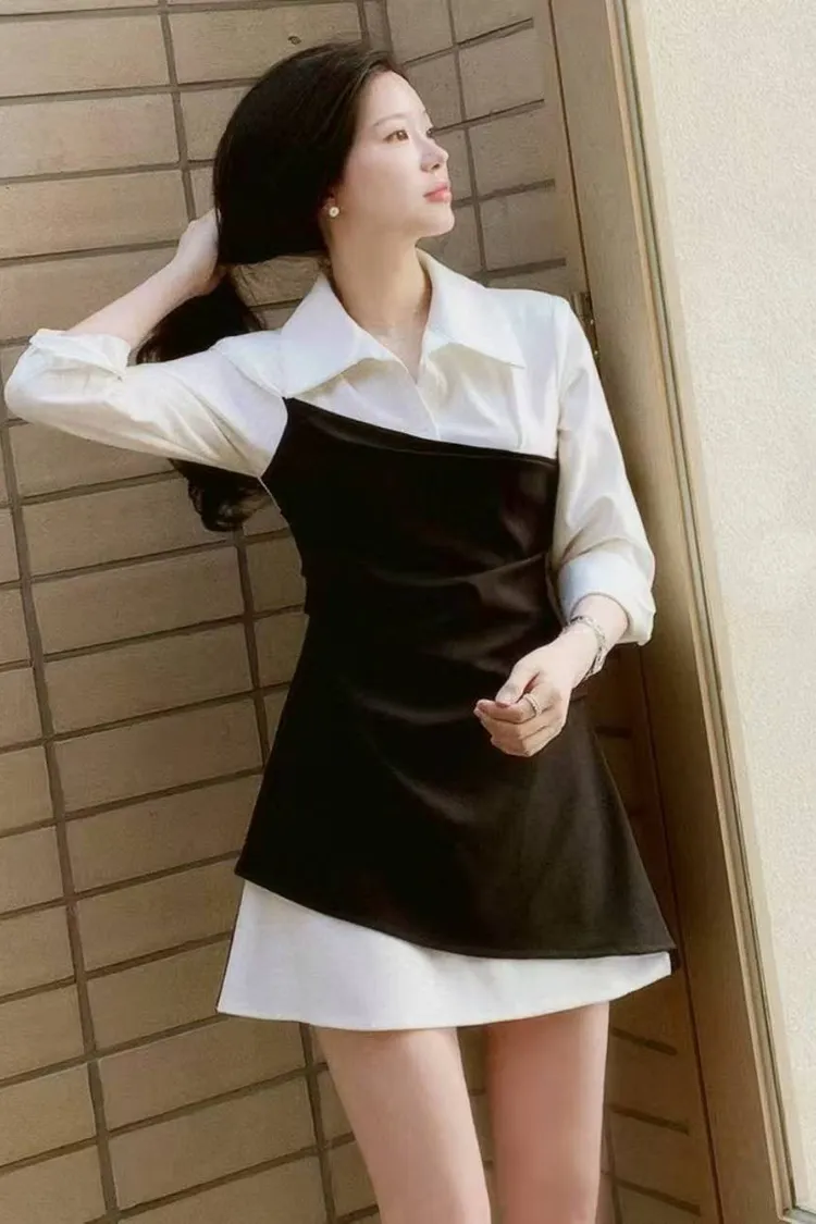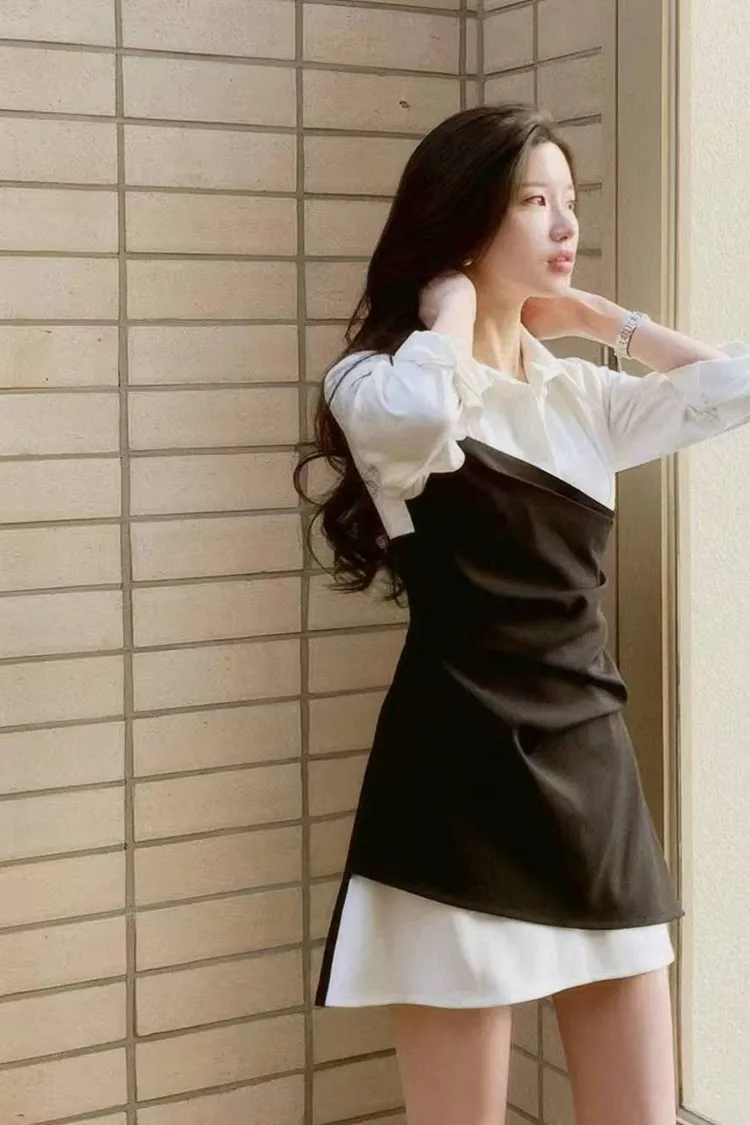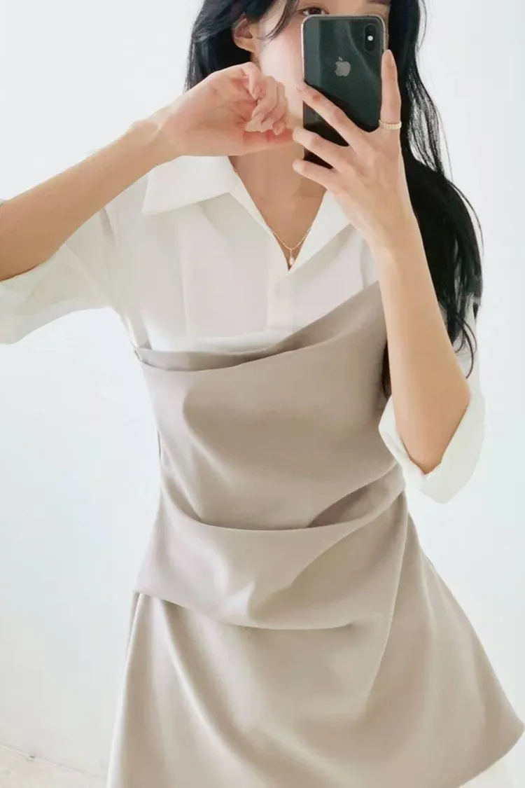 韓國代購 假兩件短洋裝