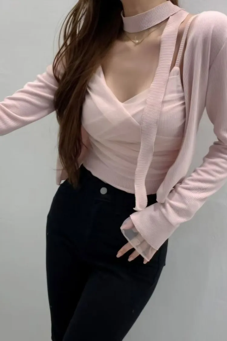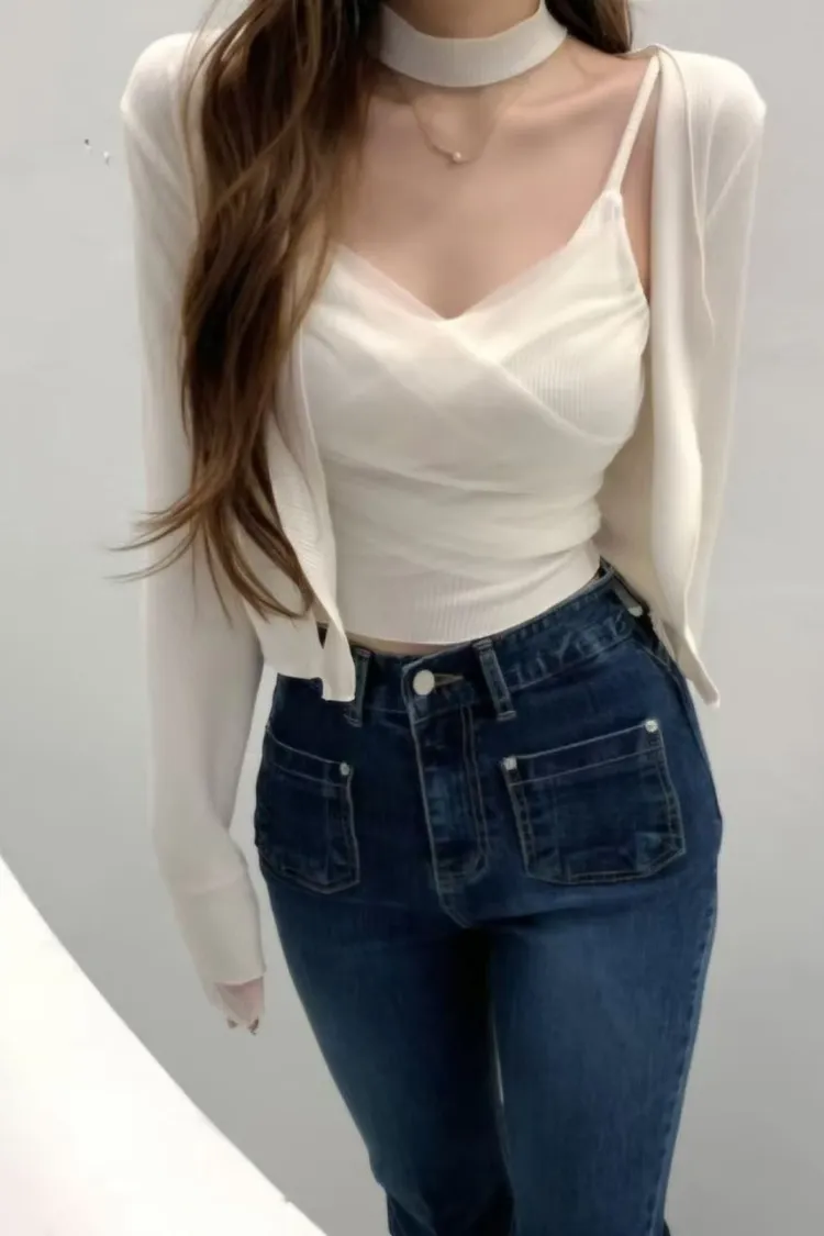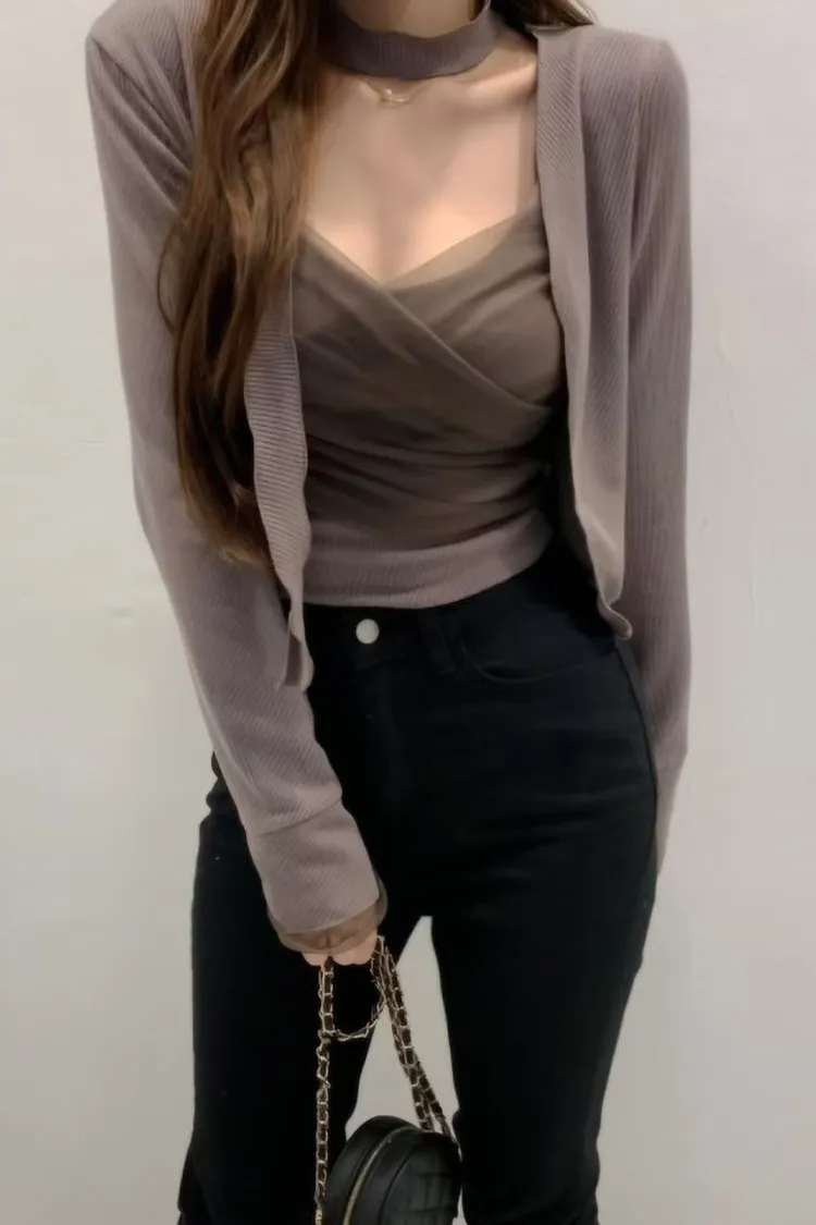 象牙白現貨1 韓國代購 裸紗氣質背心+小外套