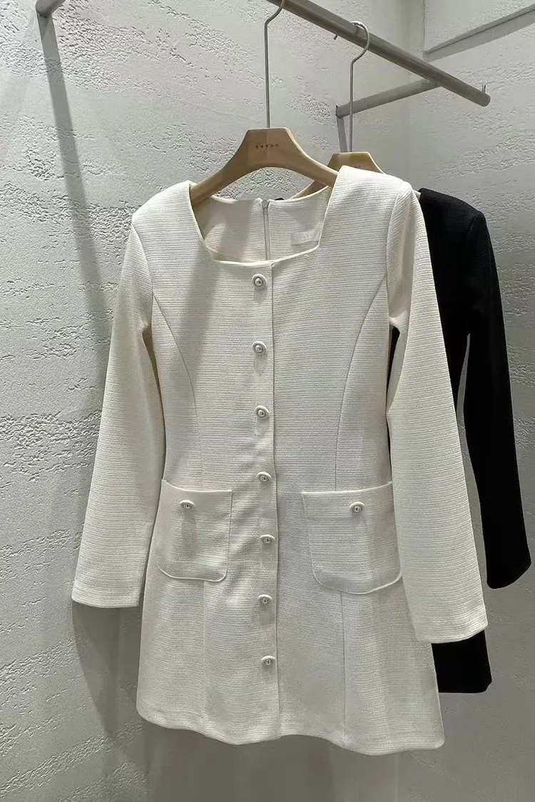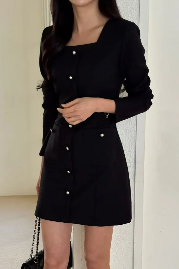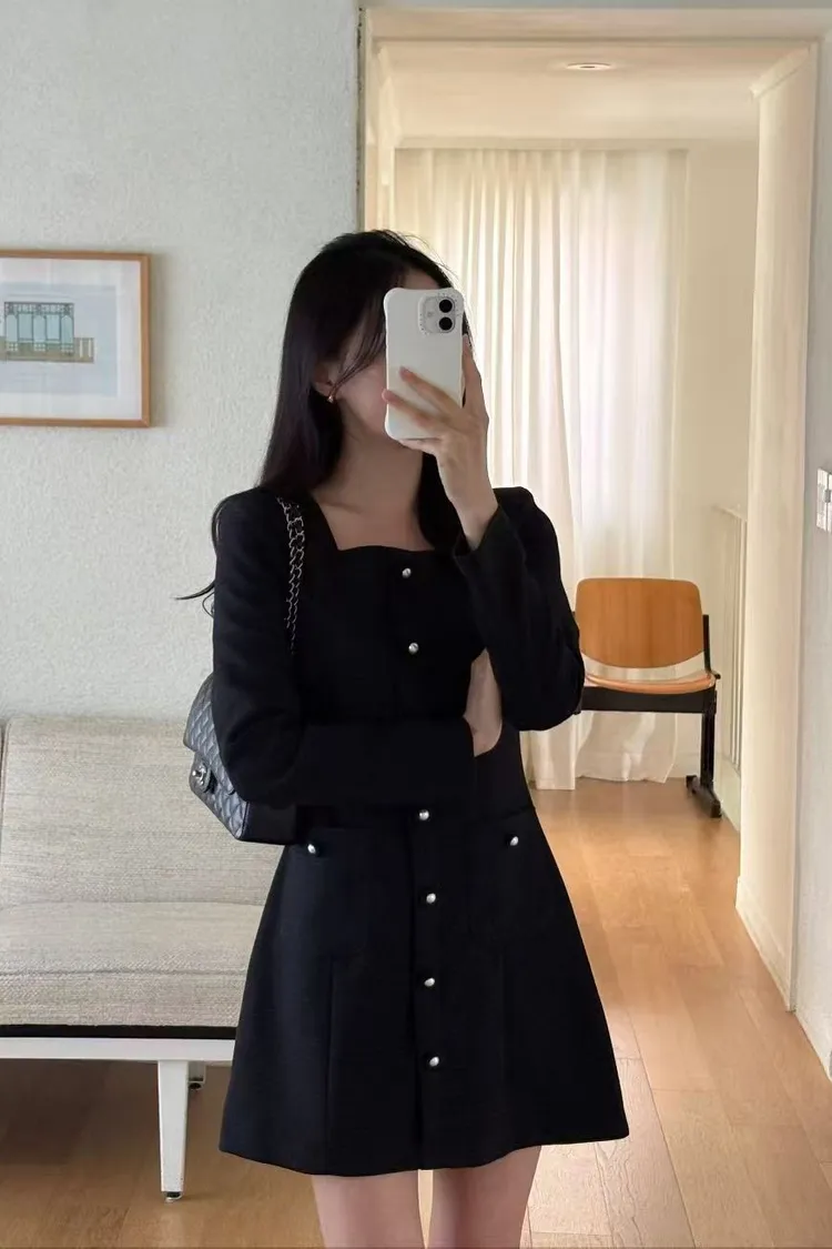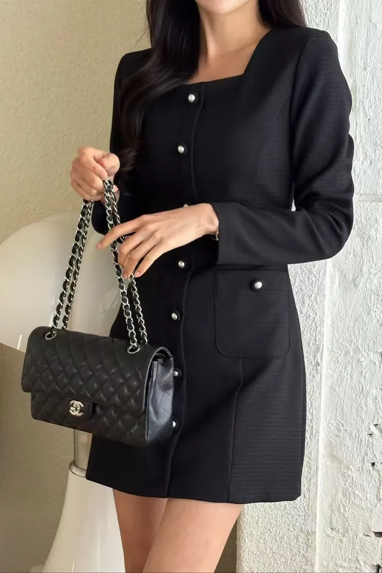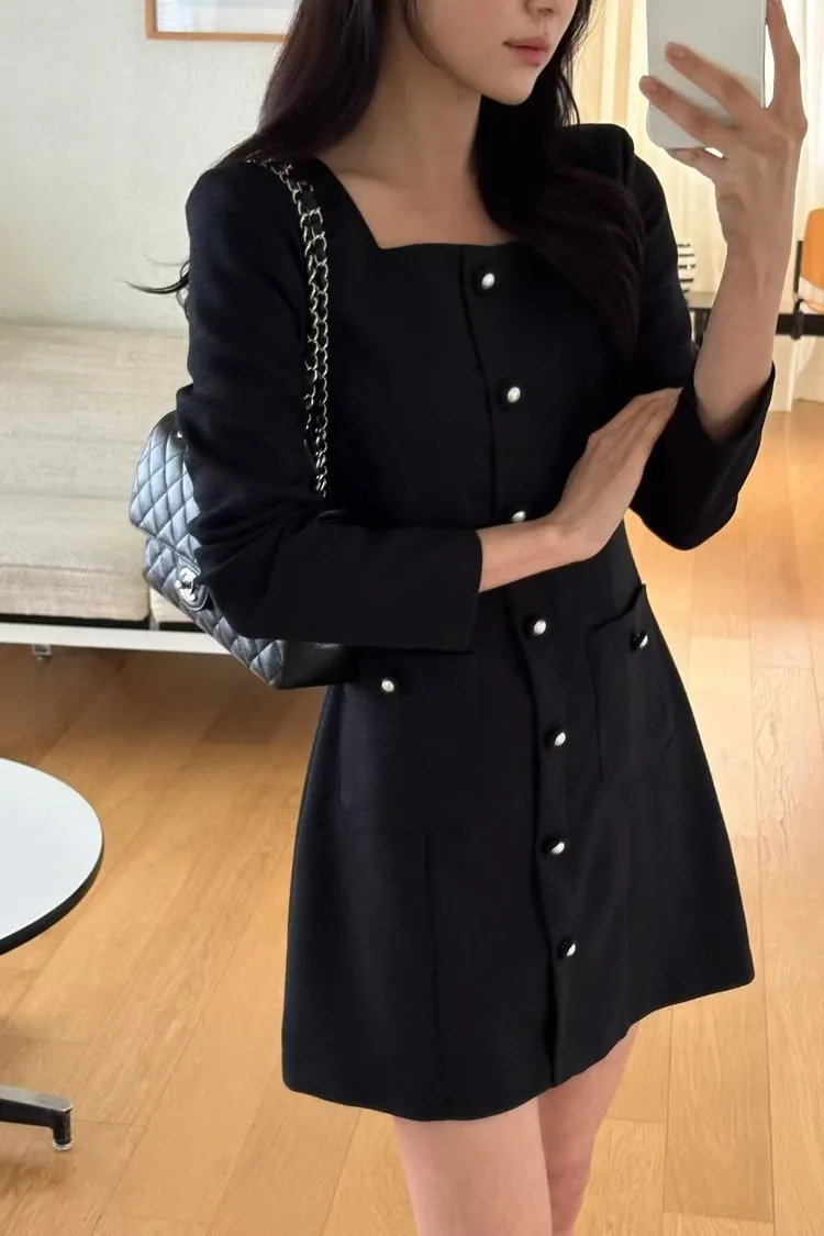韓國代購 法式小香風方領連身裙(長袖)