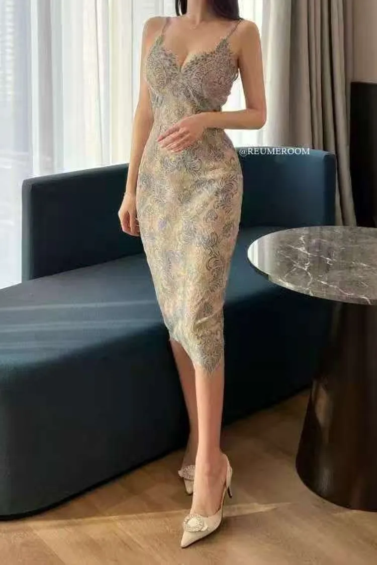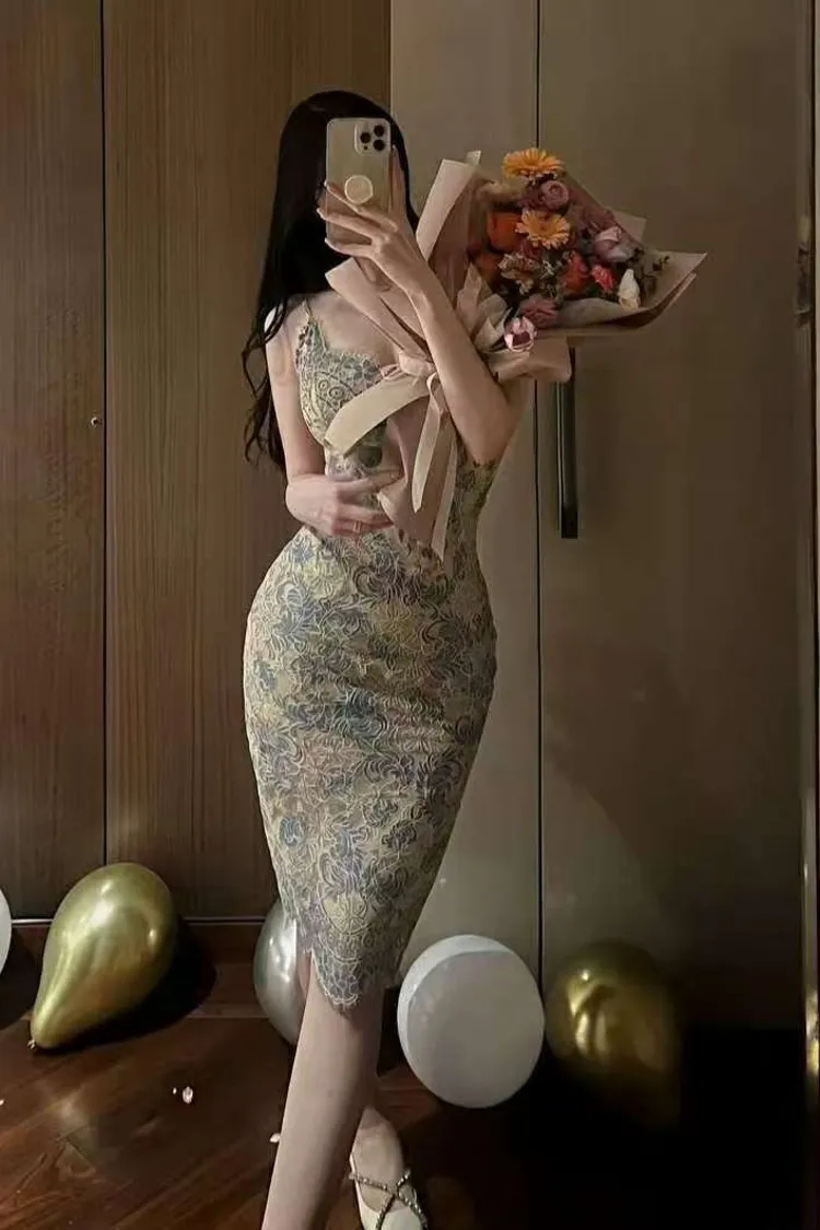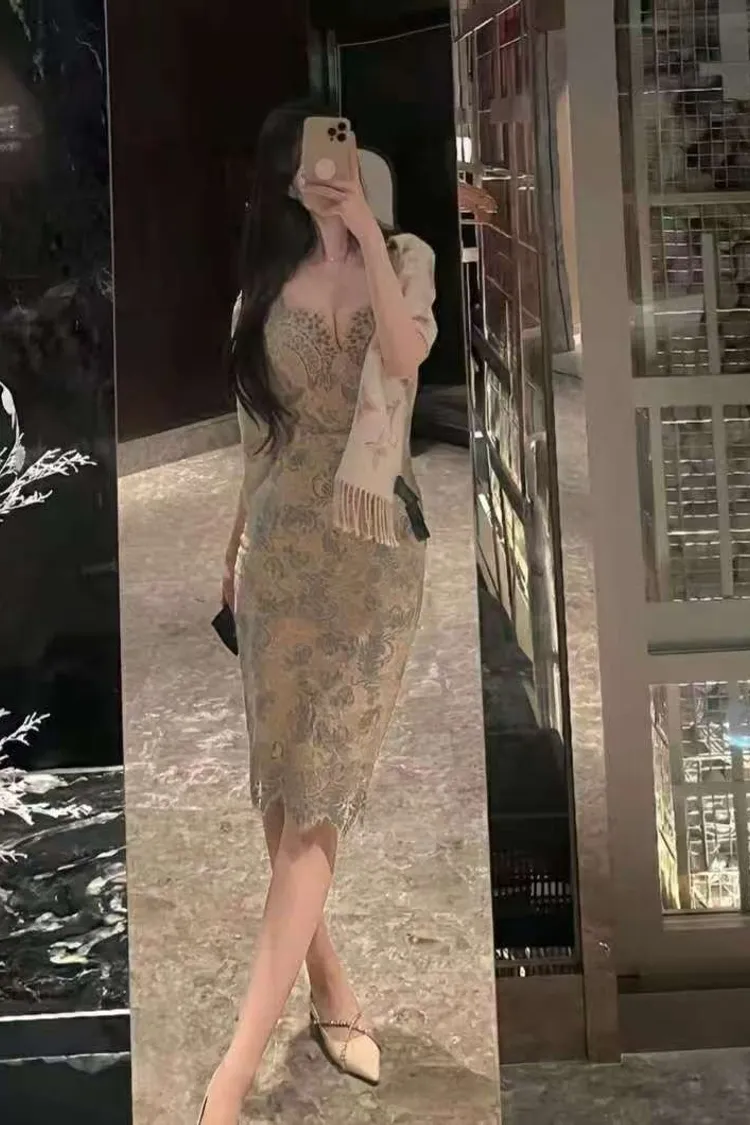 韓國代購 緹花蕾絲包臀洋裝