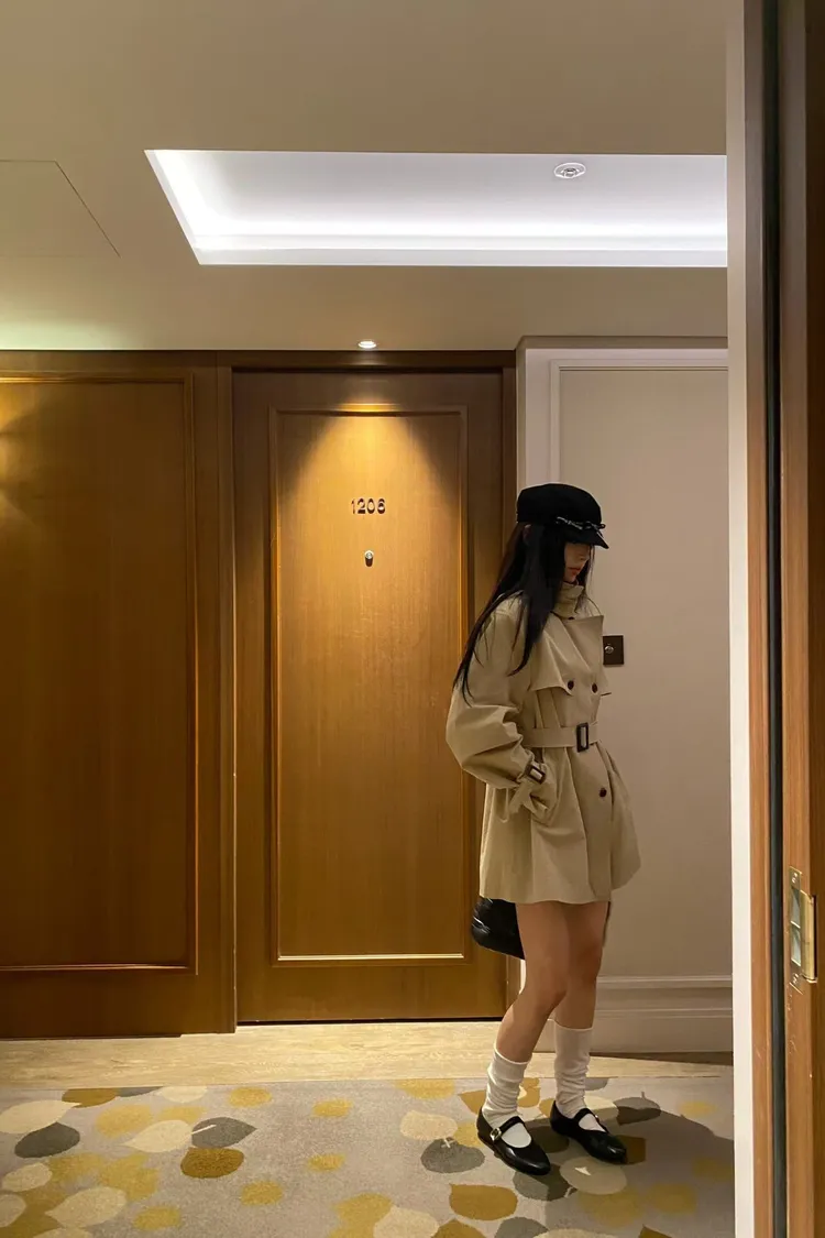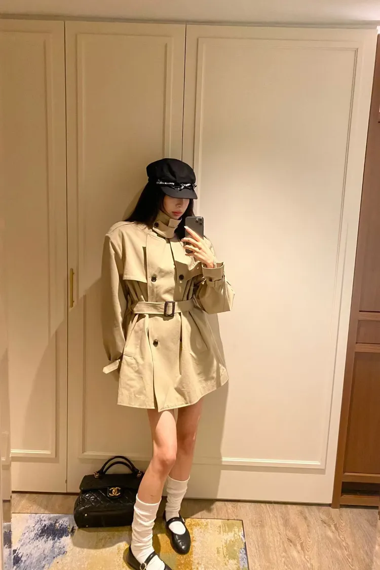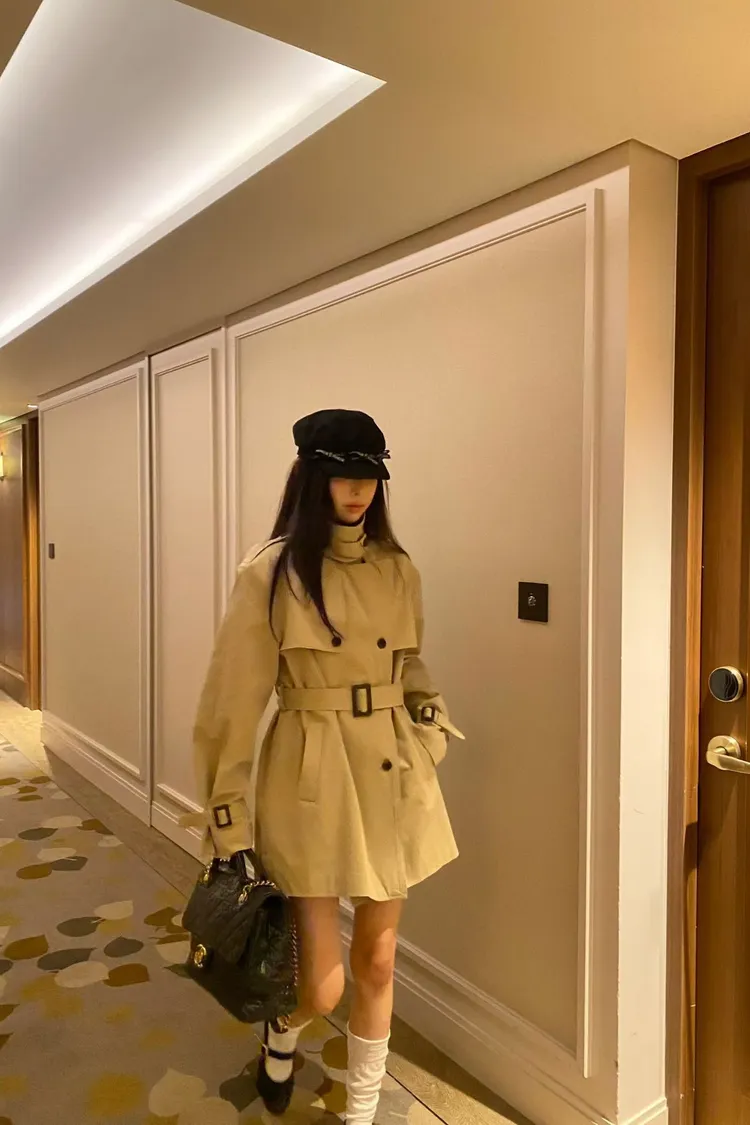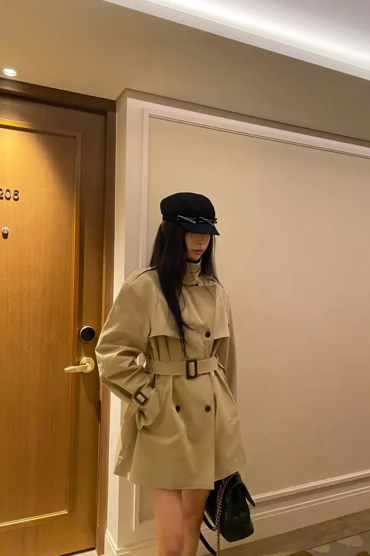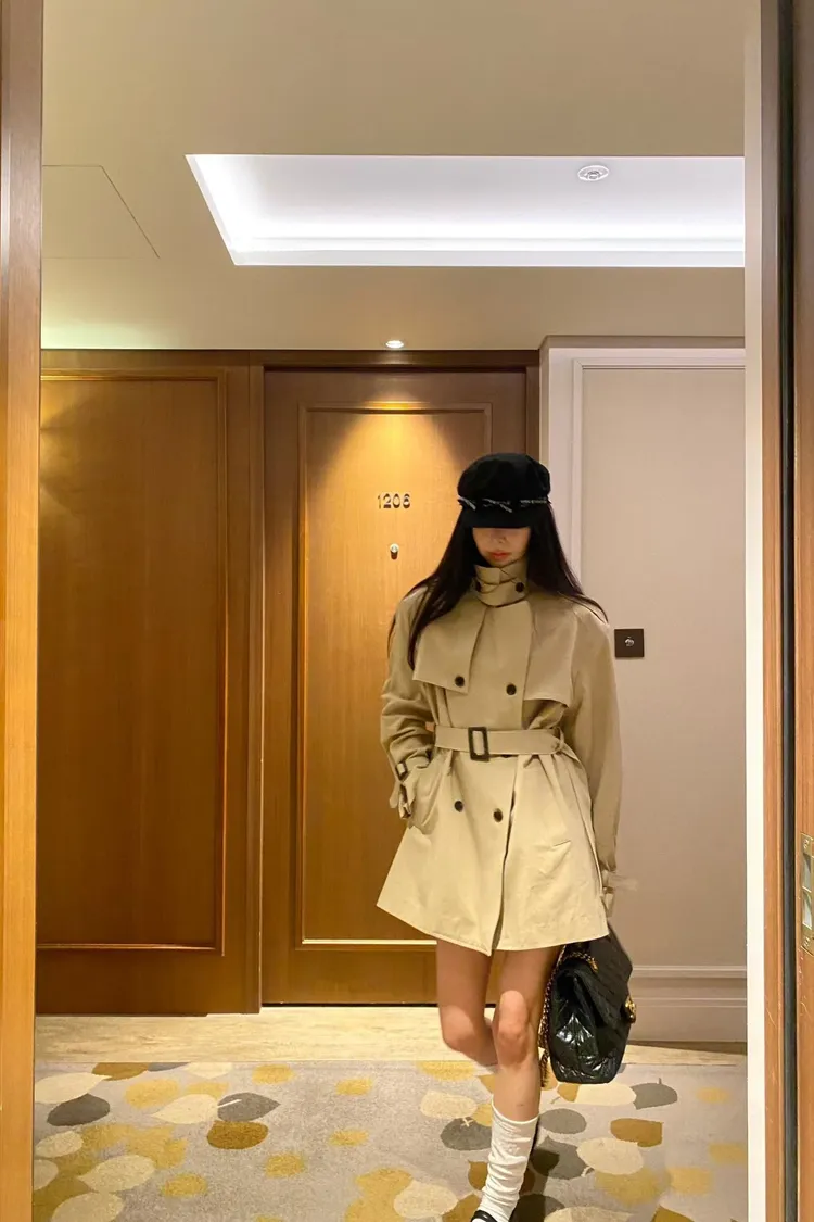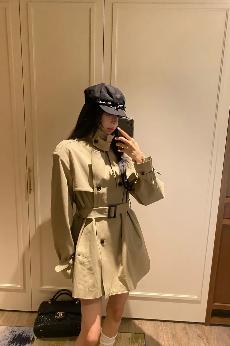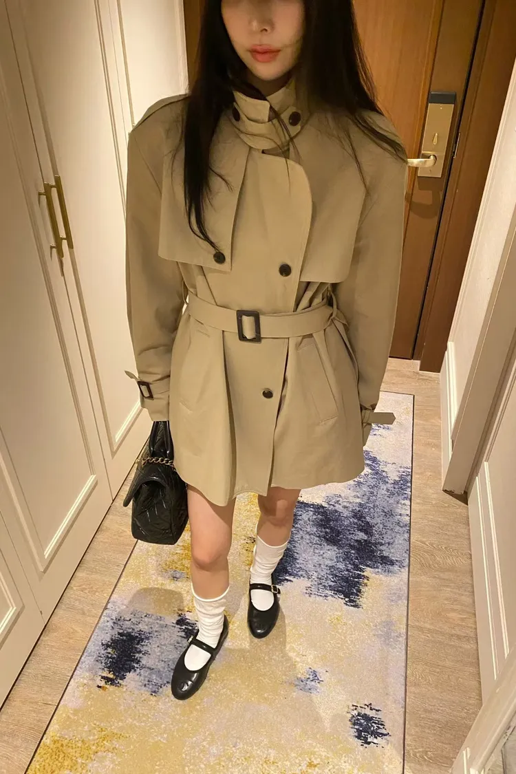 韓國代購 經典排扣腰帶風衣