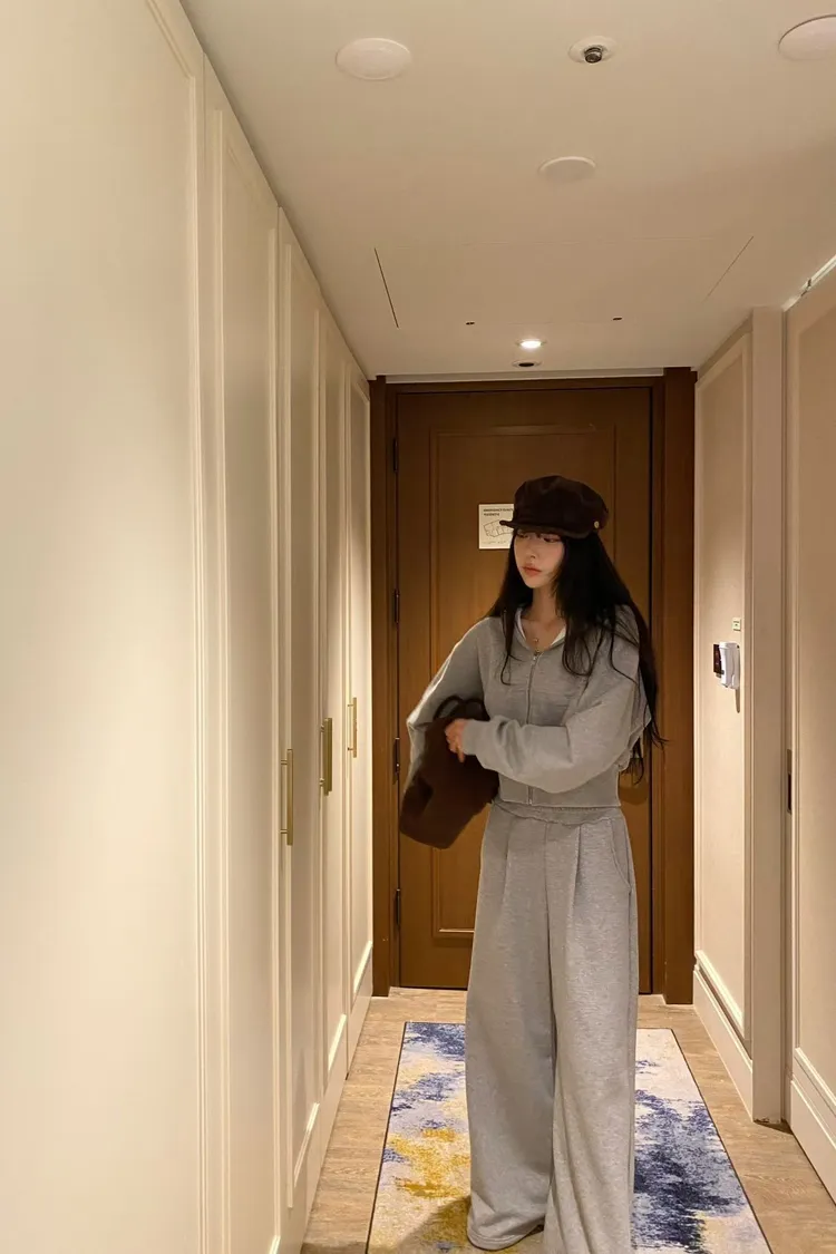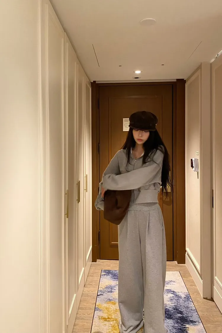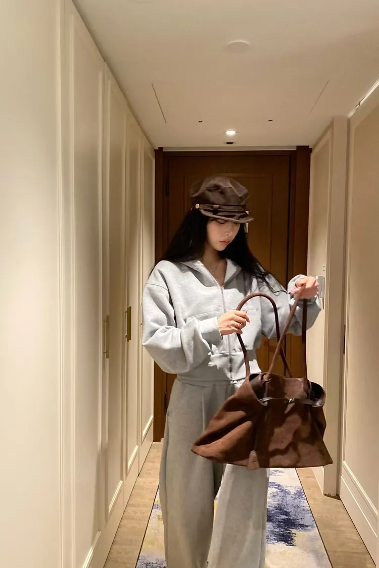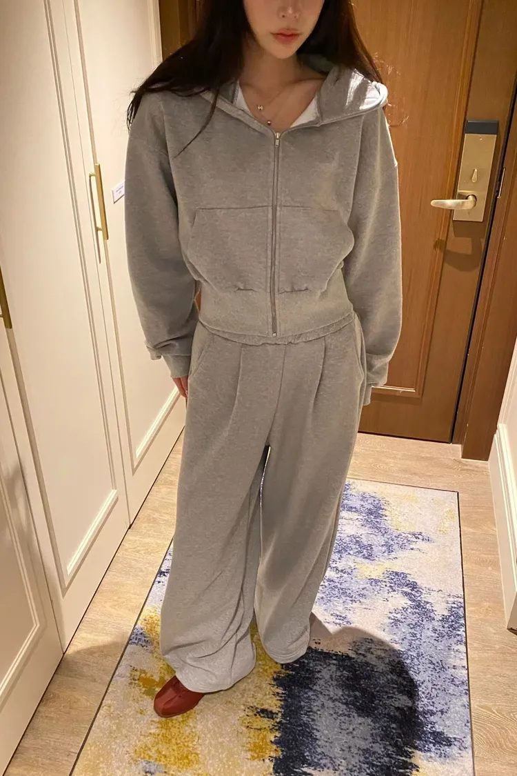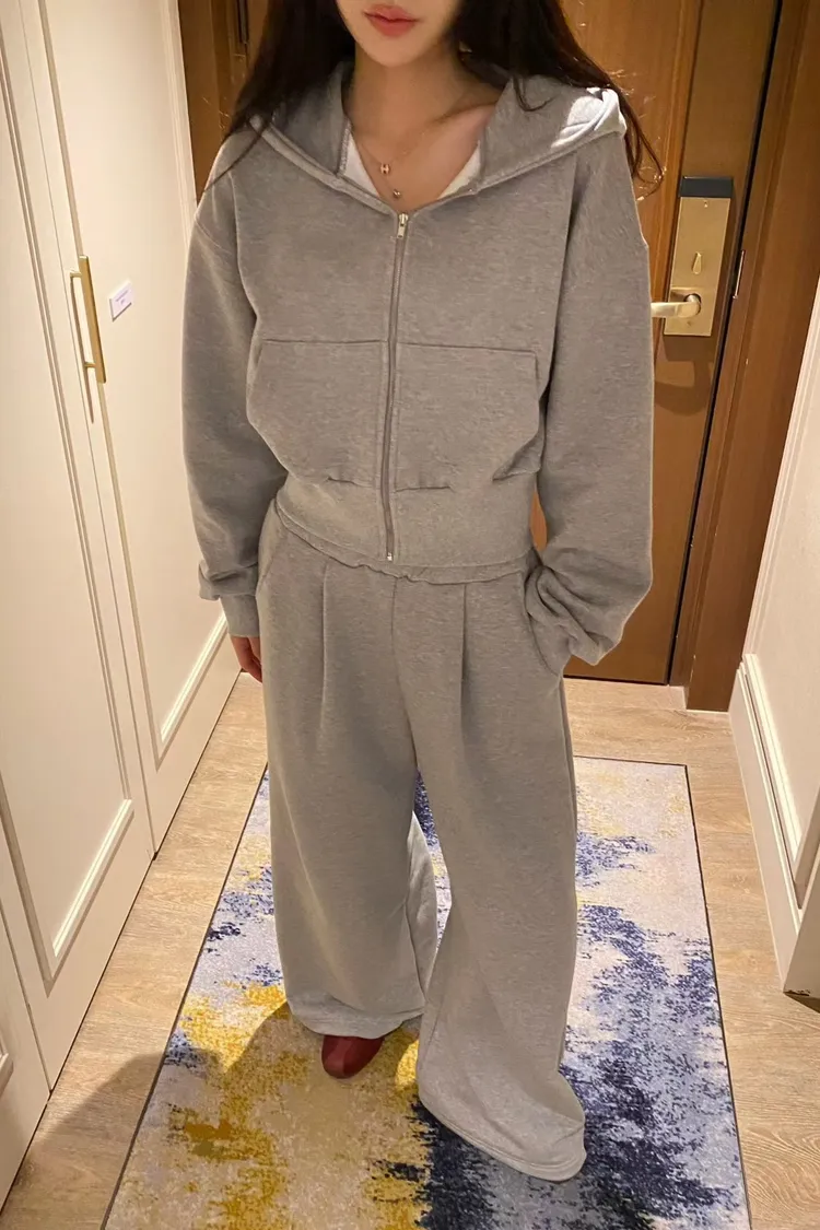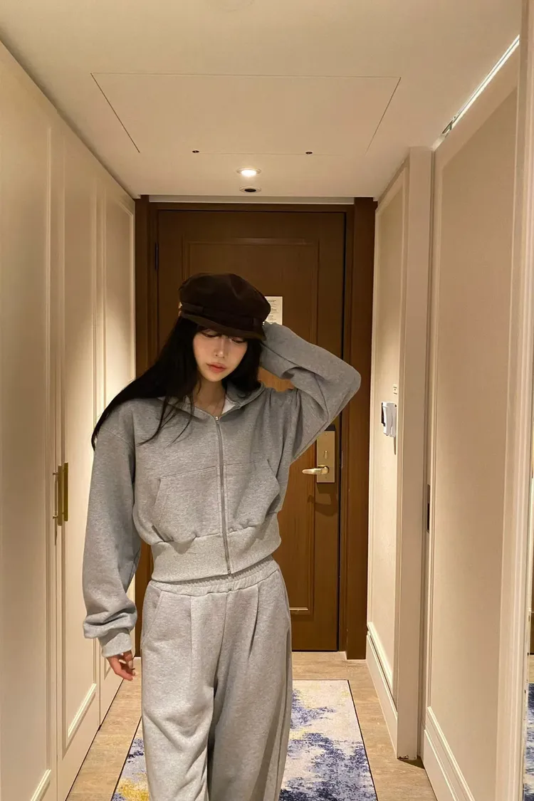 韓國代購 短版連帽運動套裝