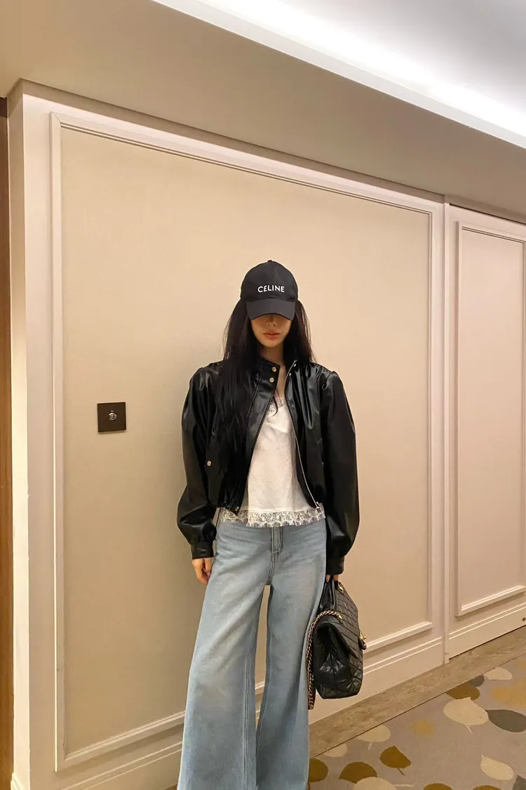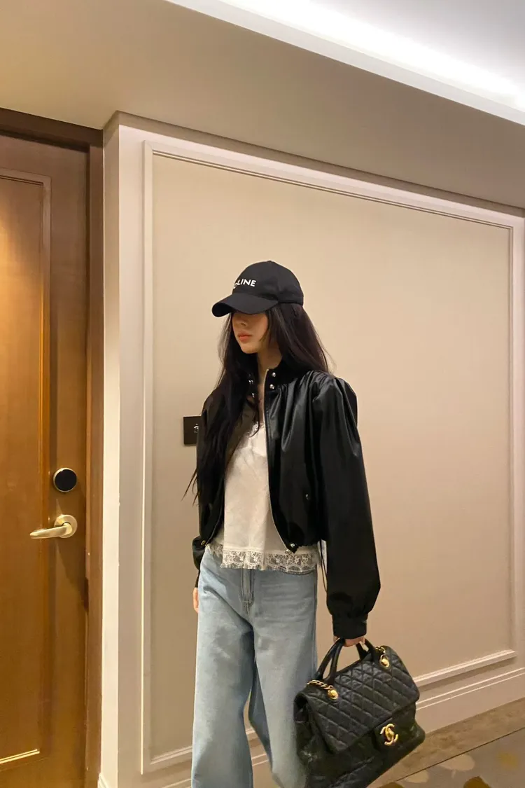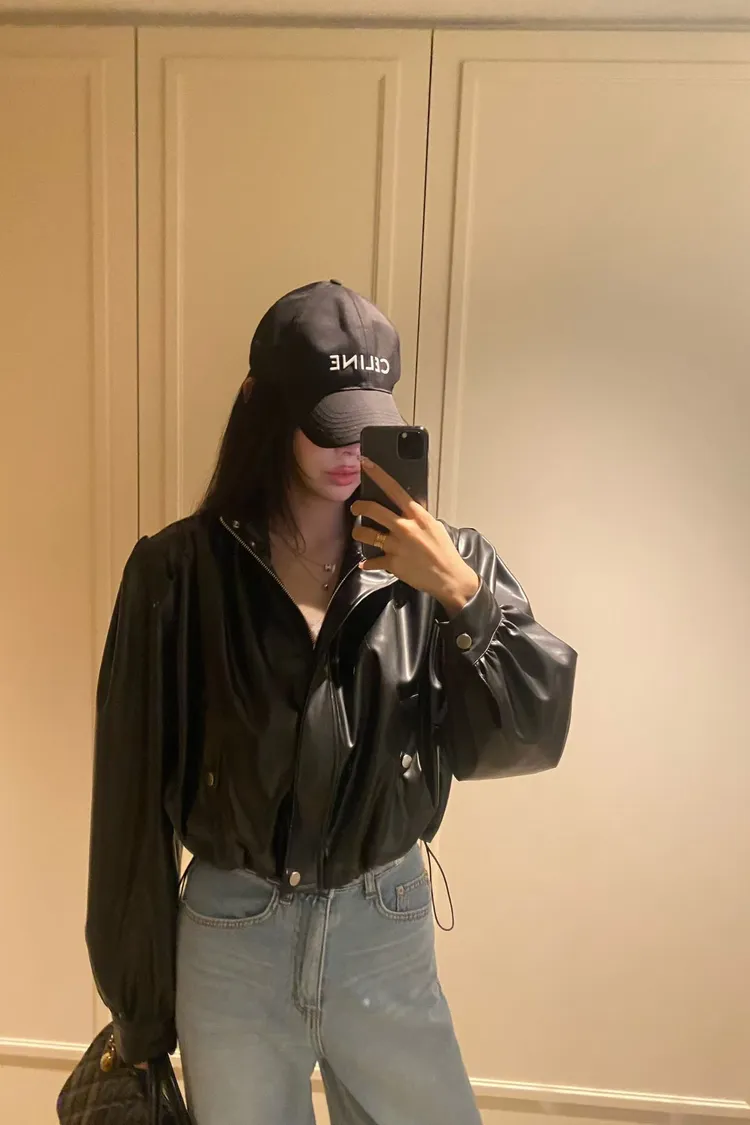 韓國代購 曜石黑澎袖皮衣外套