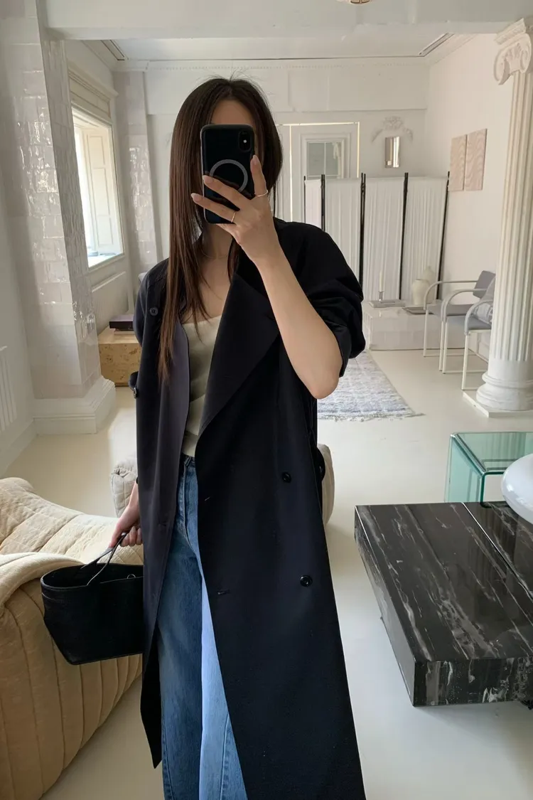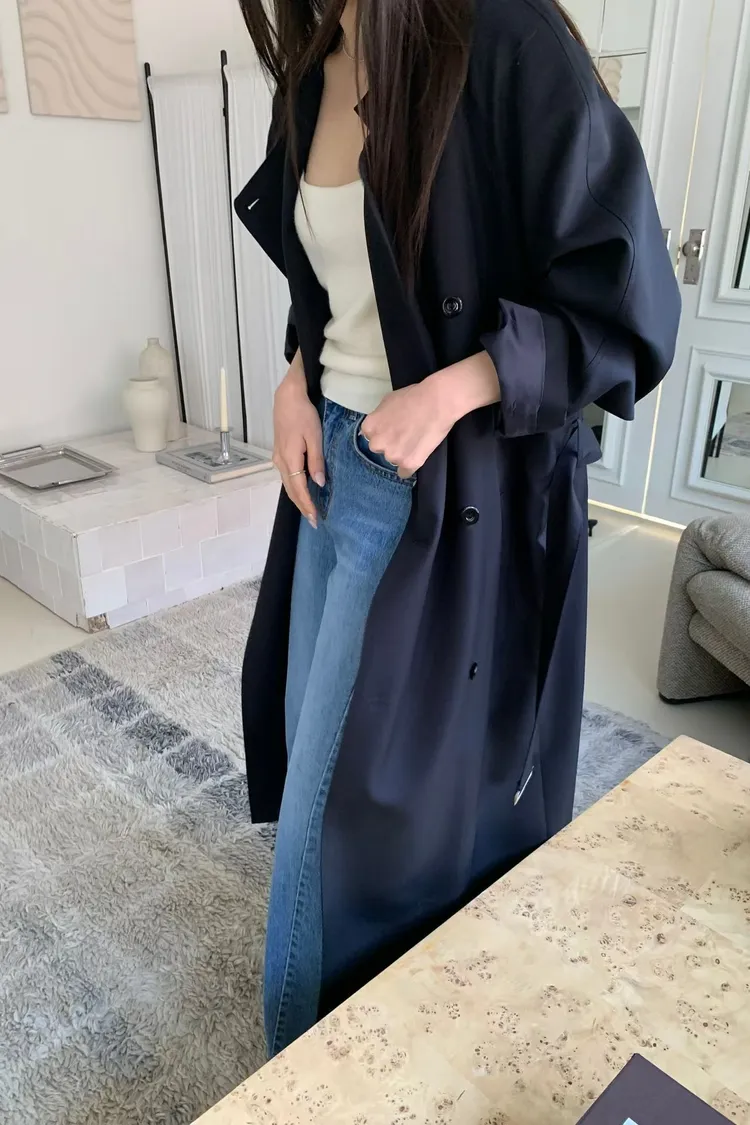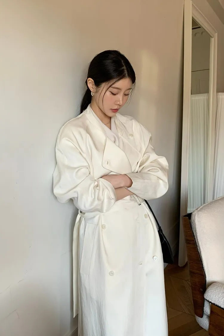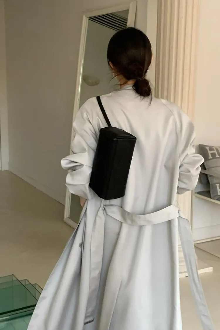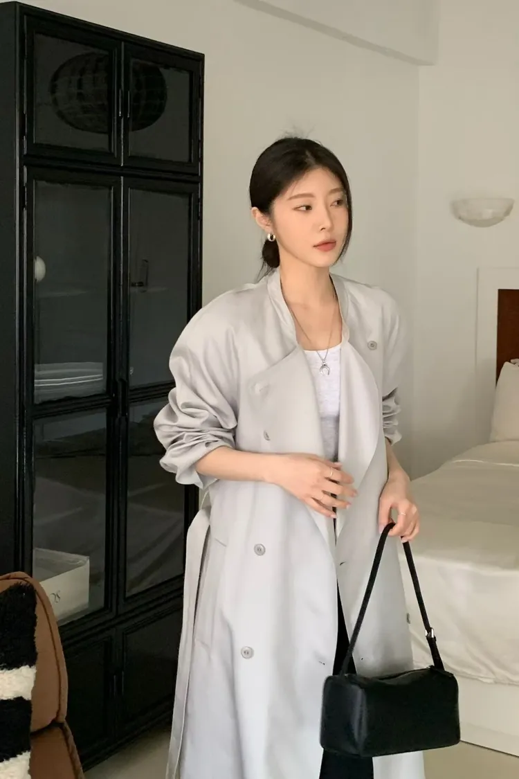 韓國代購 法式慵懶天絲混紡繫帶長版風衣