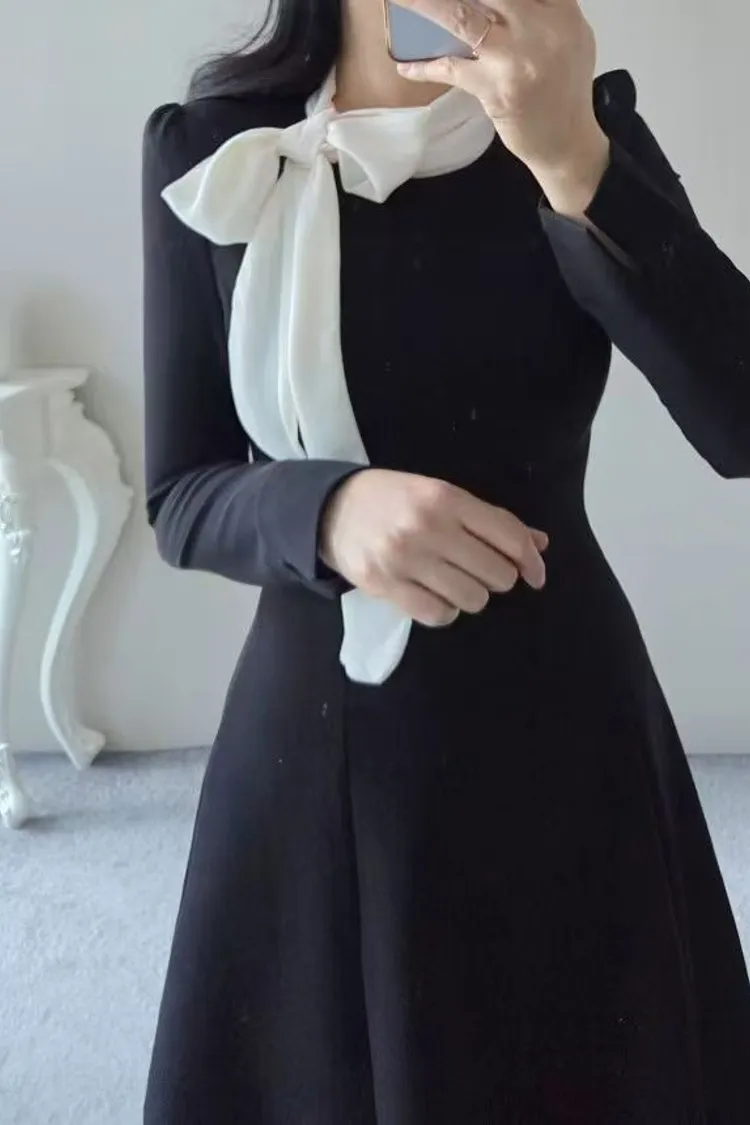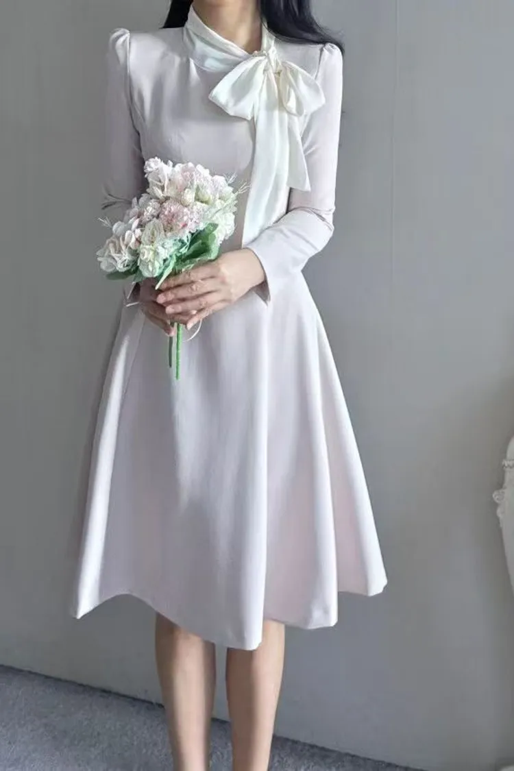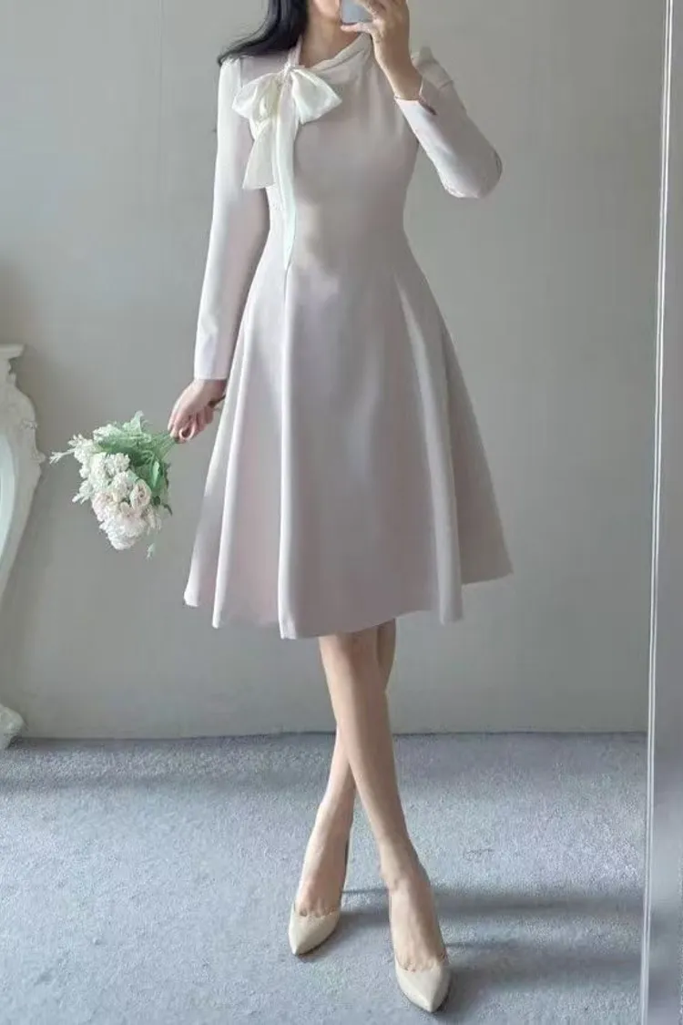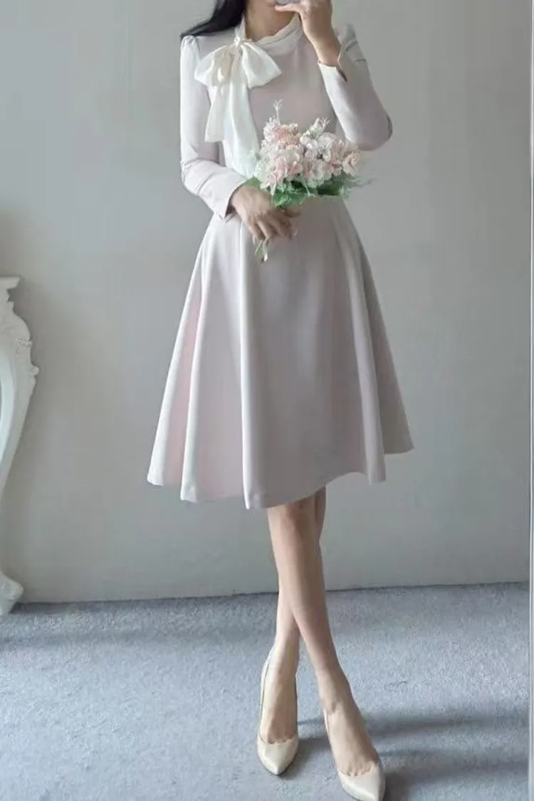 韓國代購 千金風收腰蝴蝶結連衣裙