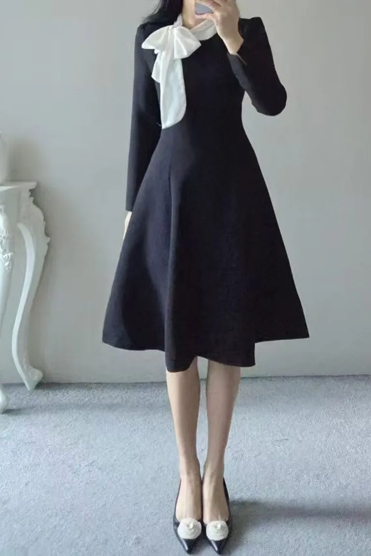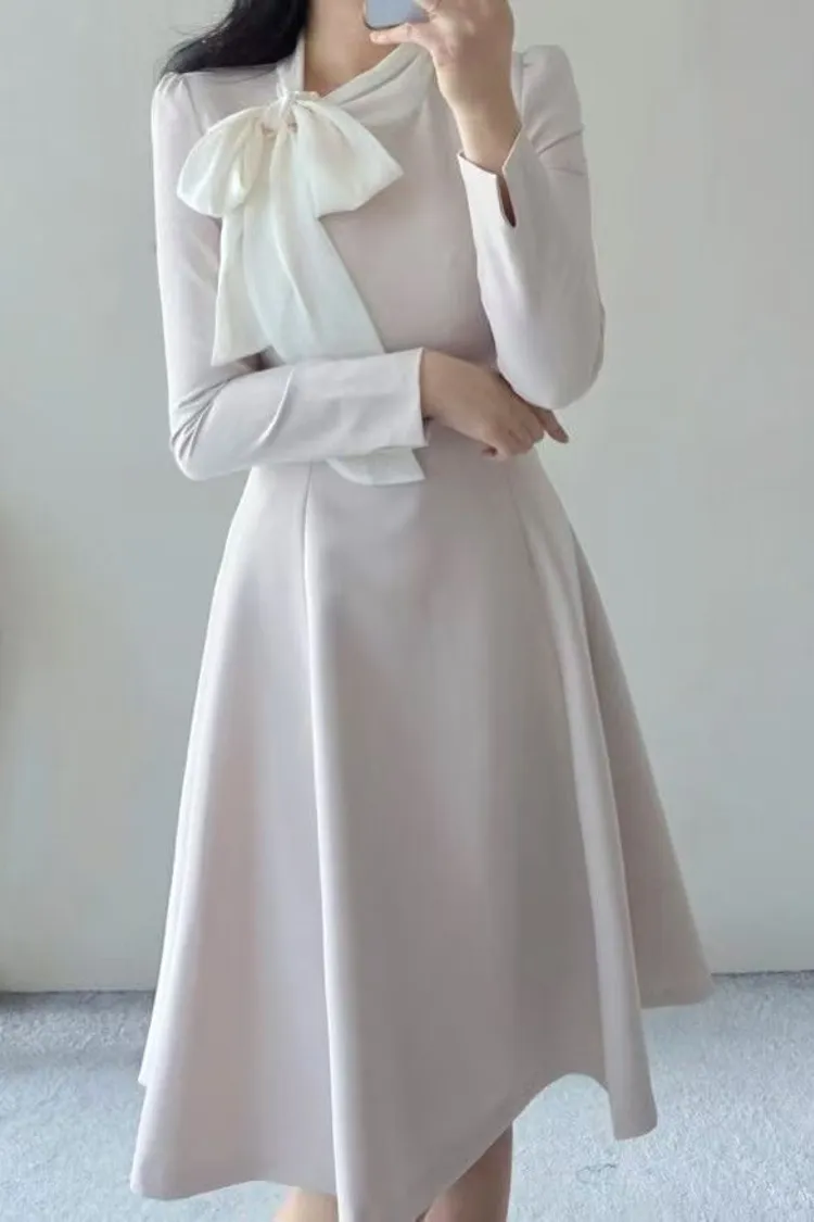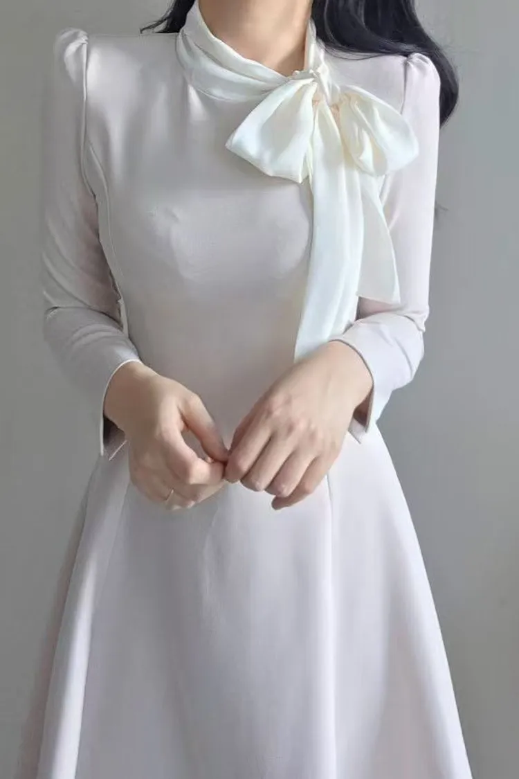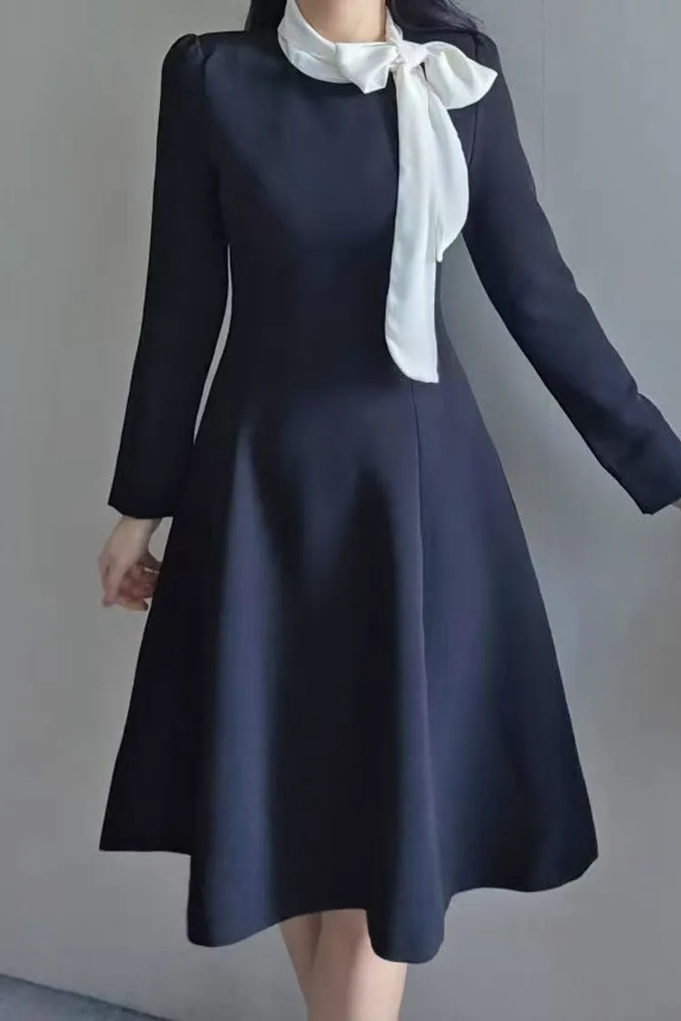 韓國代購 千金風收腰蝴蝶結連衣裙