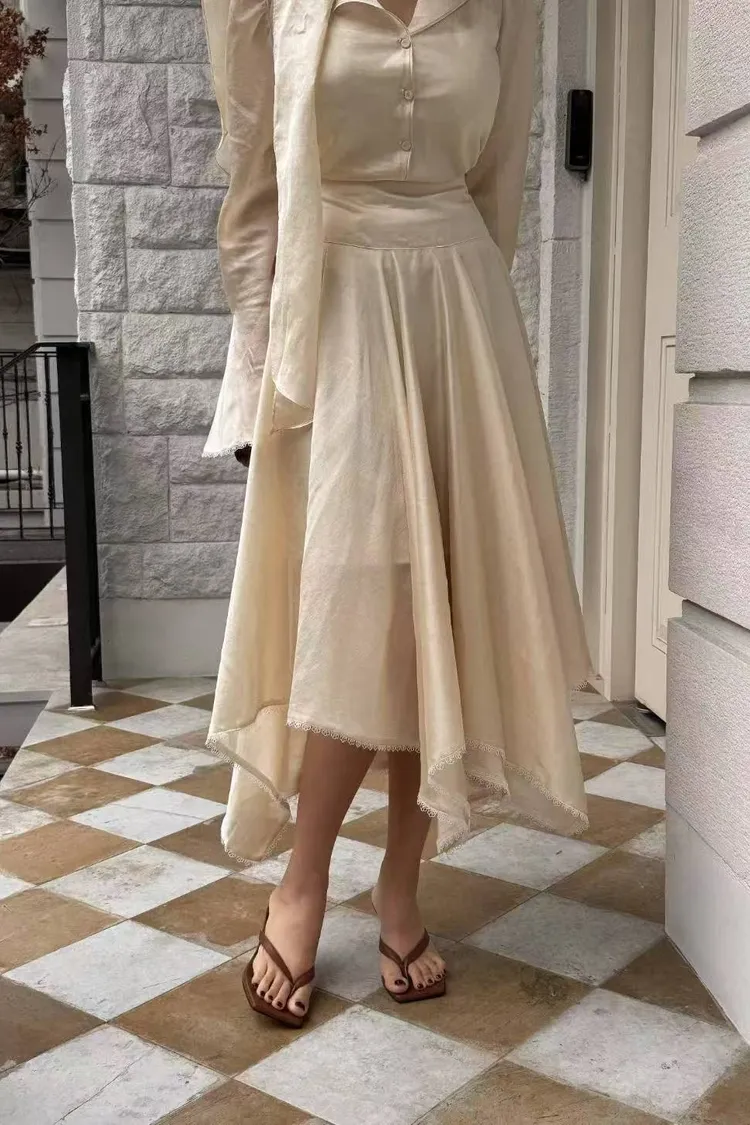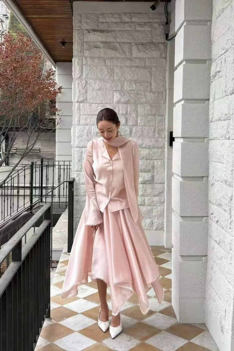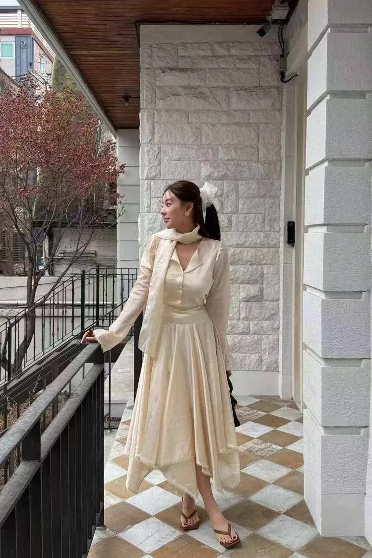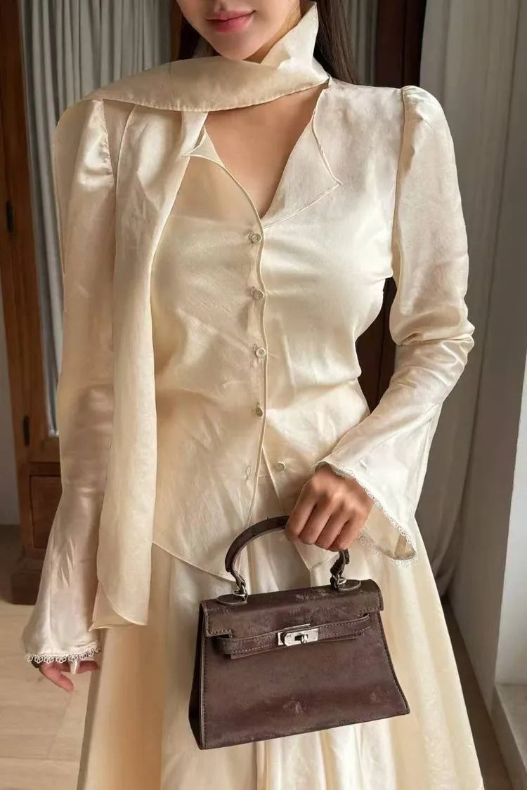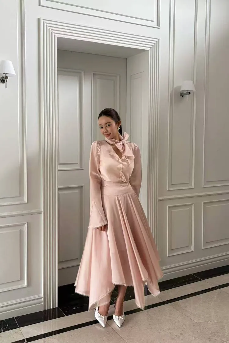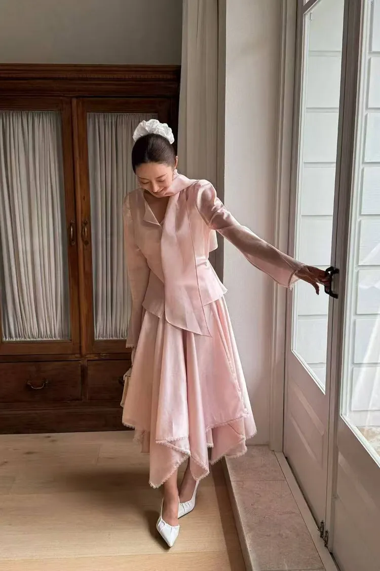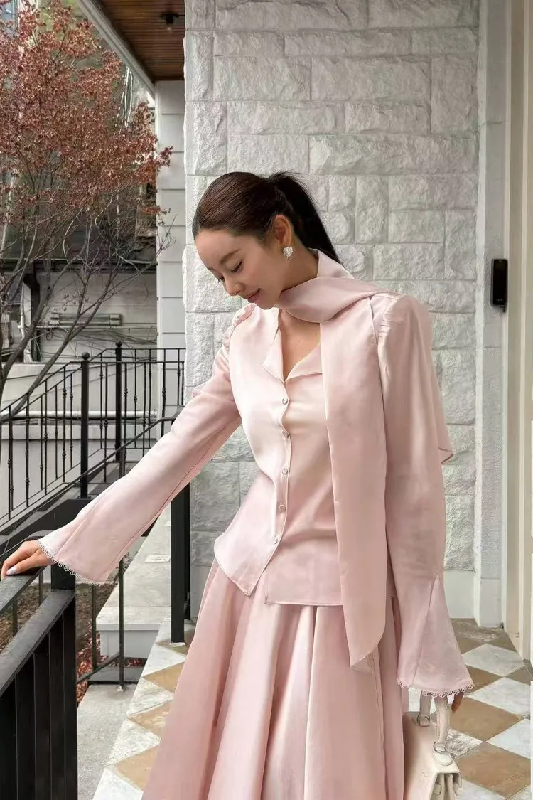 韓國代購 輕奢光澤緞面綁帶套裝