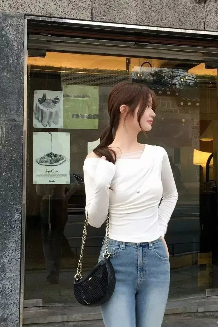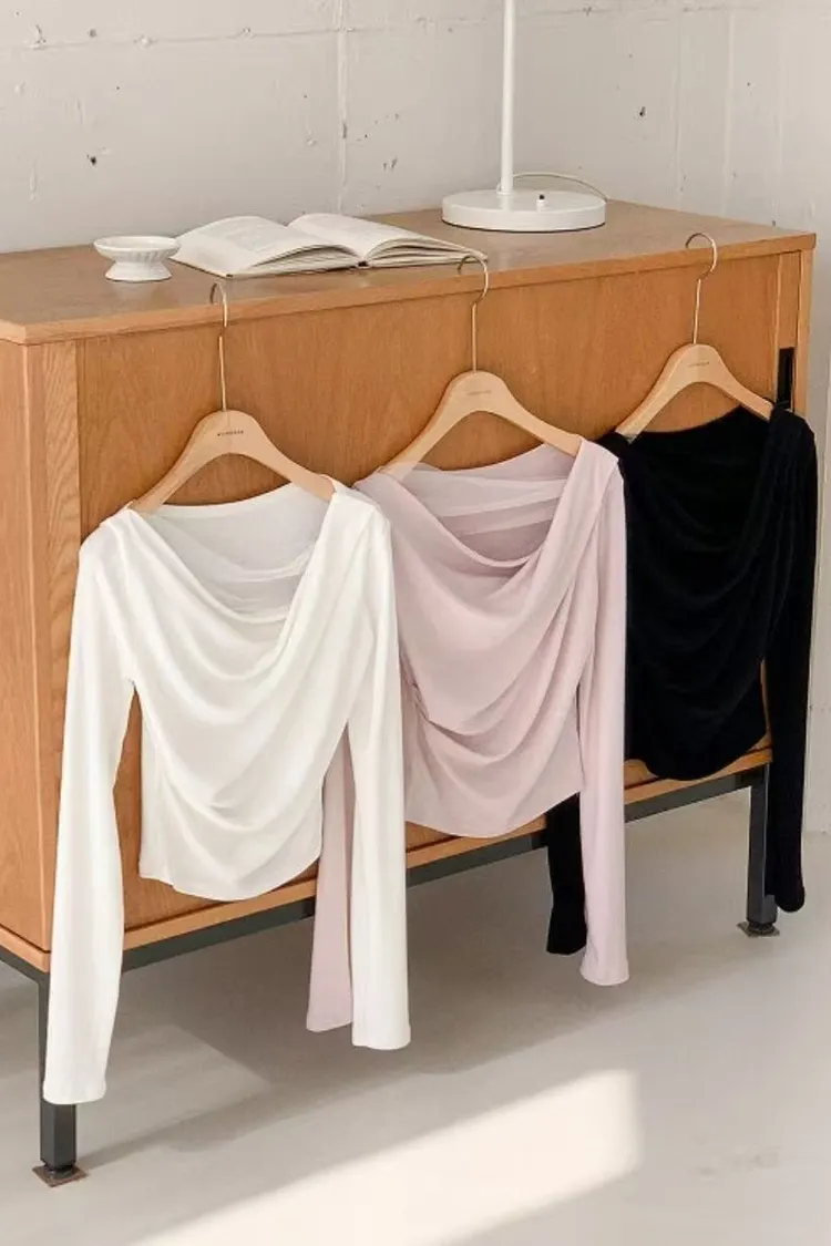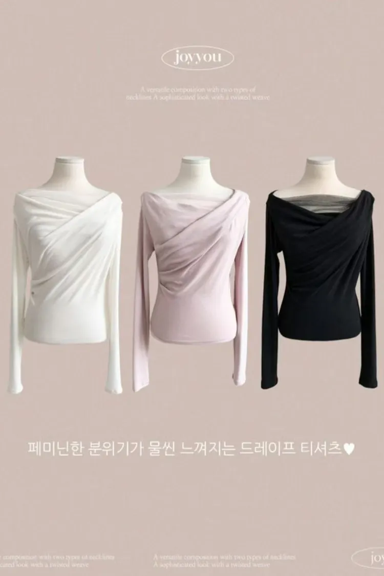 韓國代購 斜肩層次薄感上衣