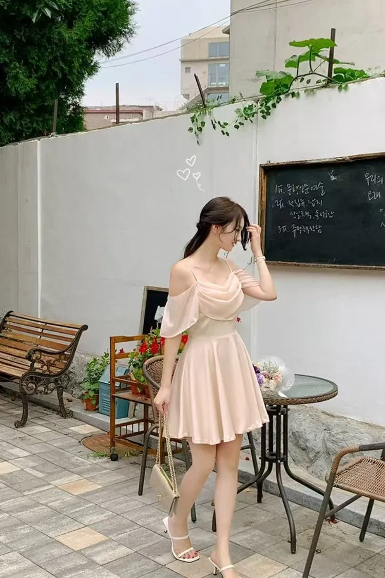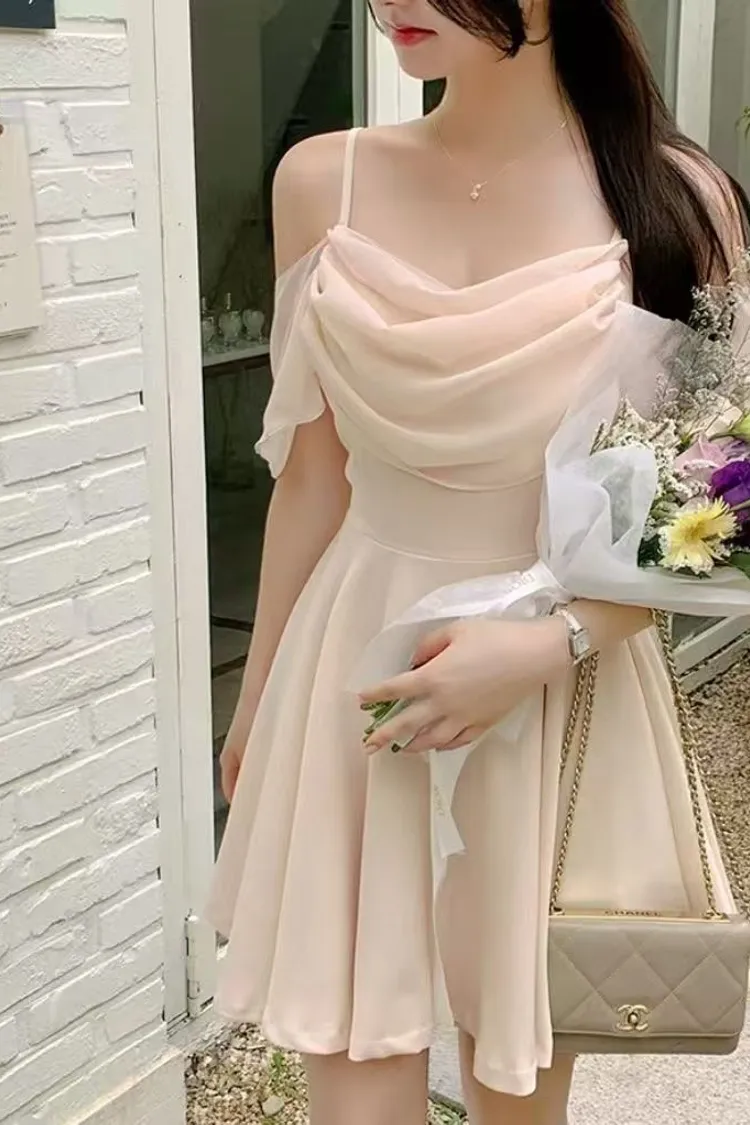 韓國代購 大領優雅抓皺洋裝(短版)