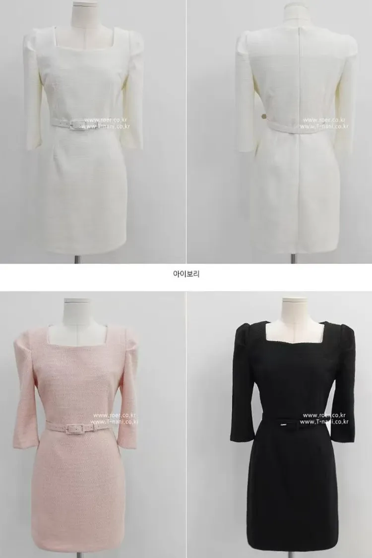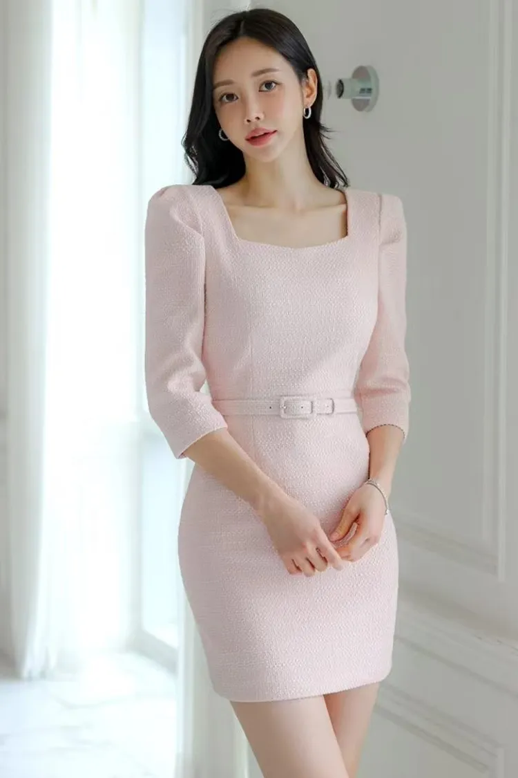韓國代購 晨曦漫步七分袖包臀連身裙(含腰帶)
