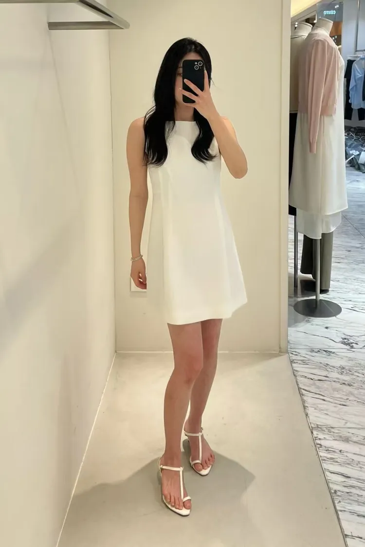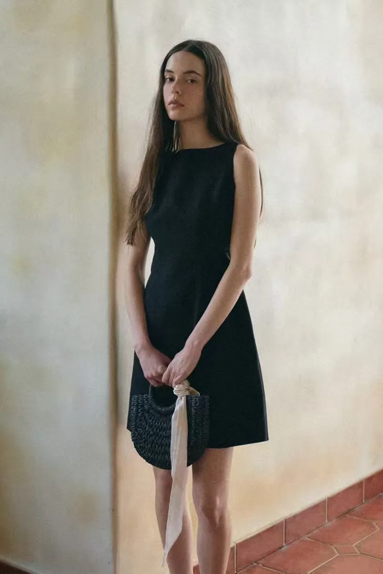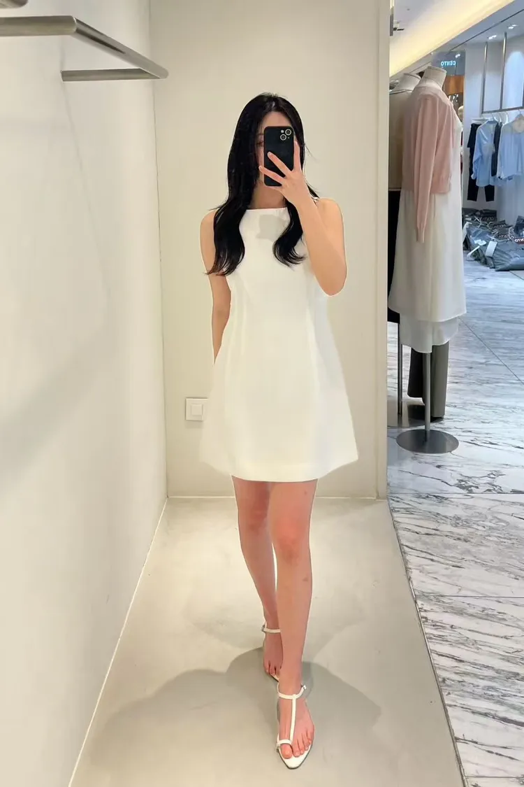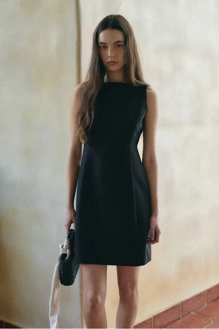 韓國代購 赫本風經典一字領修身無袖洋裝