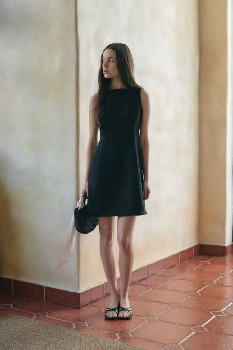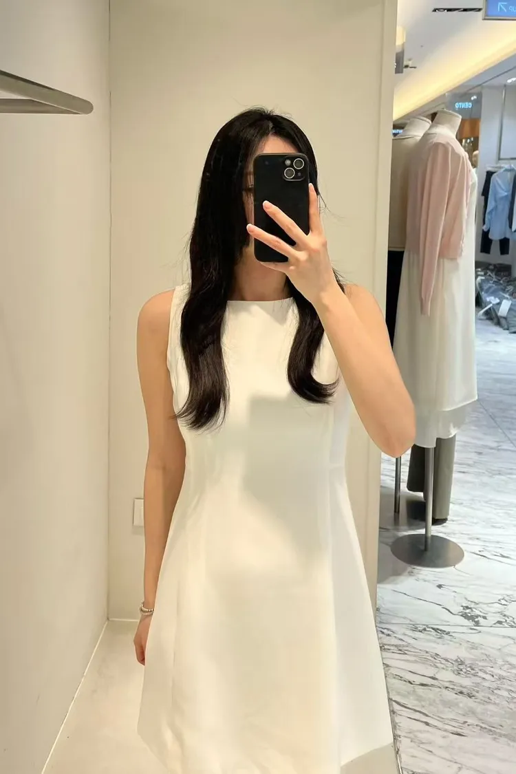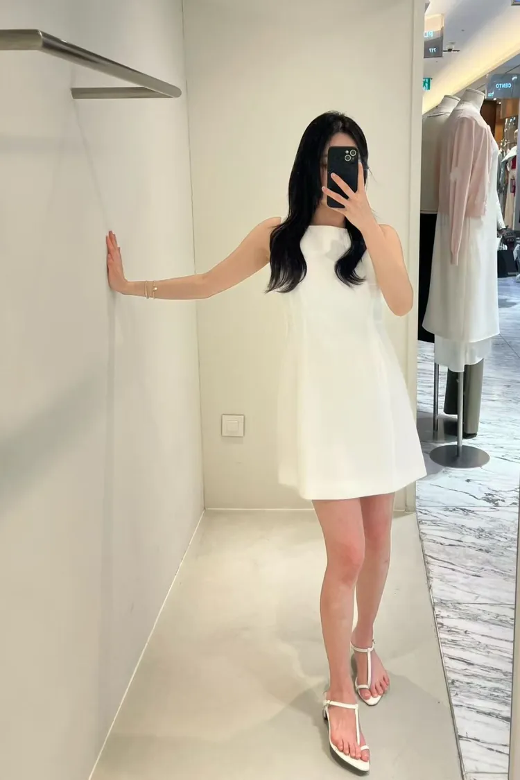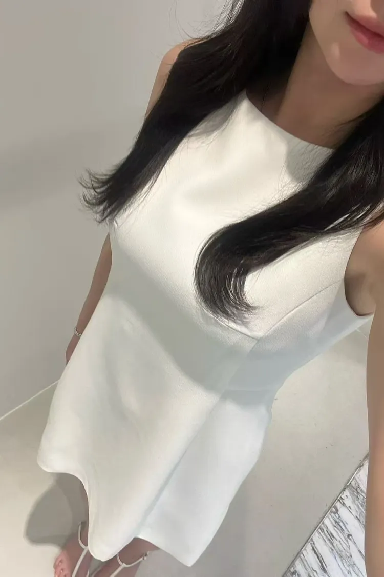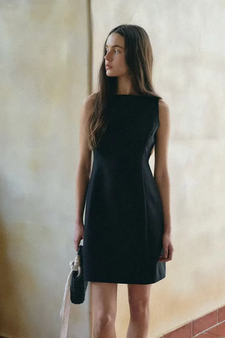 韓國代購 赫本風經典一字領修身無袖洋裝