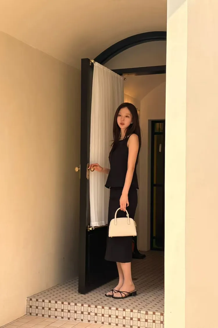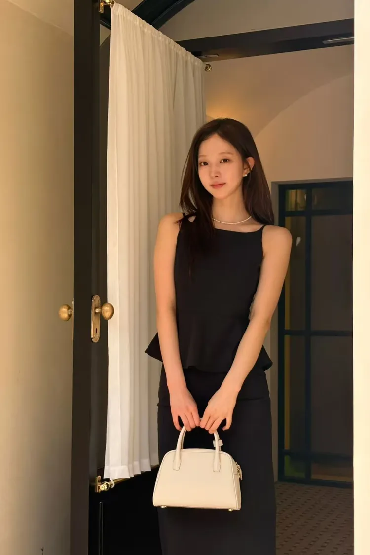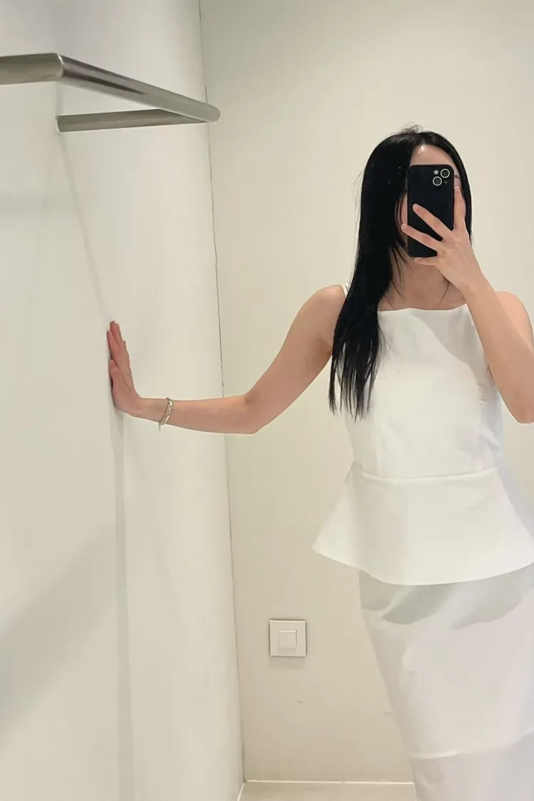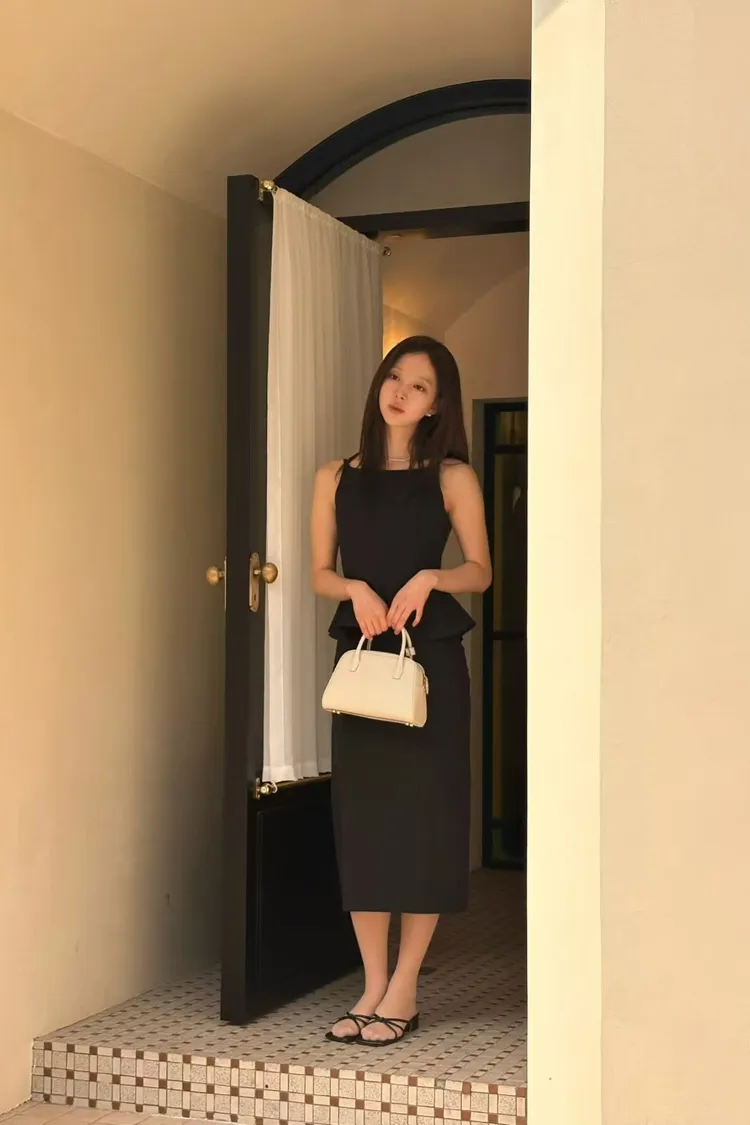 韓國代購 名媛氣場一字領傘擺上衣&知性窄裙套裝