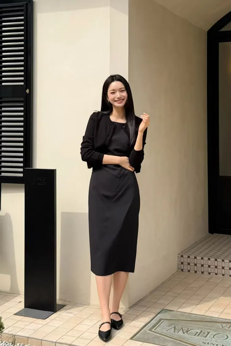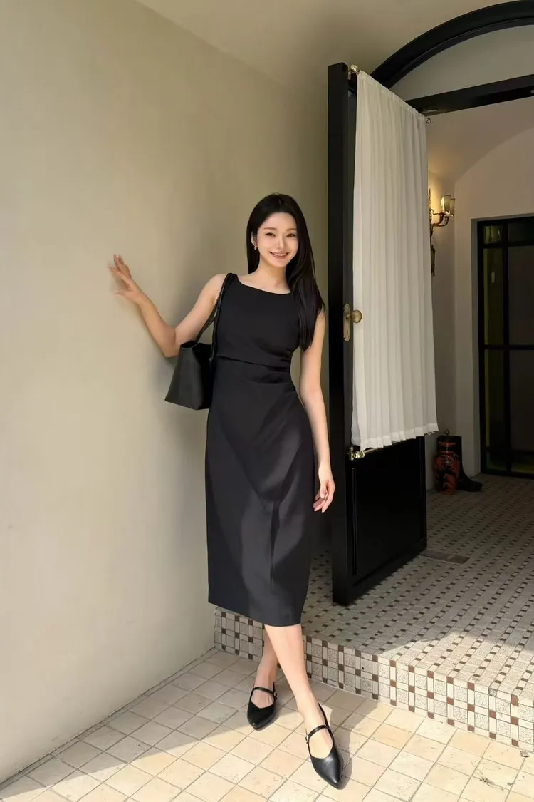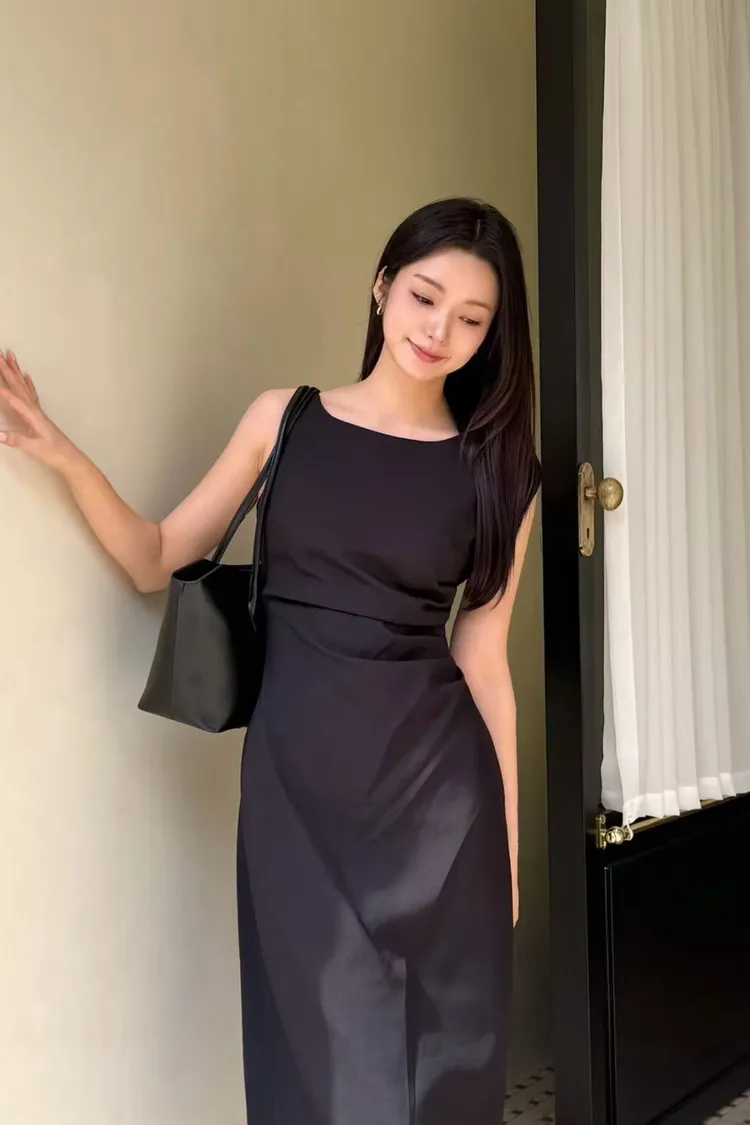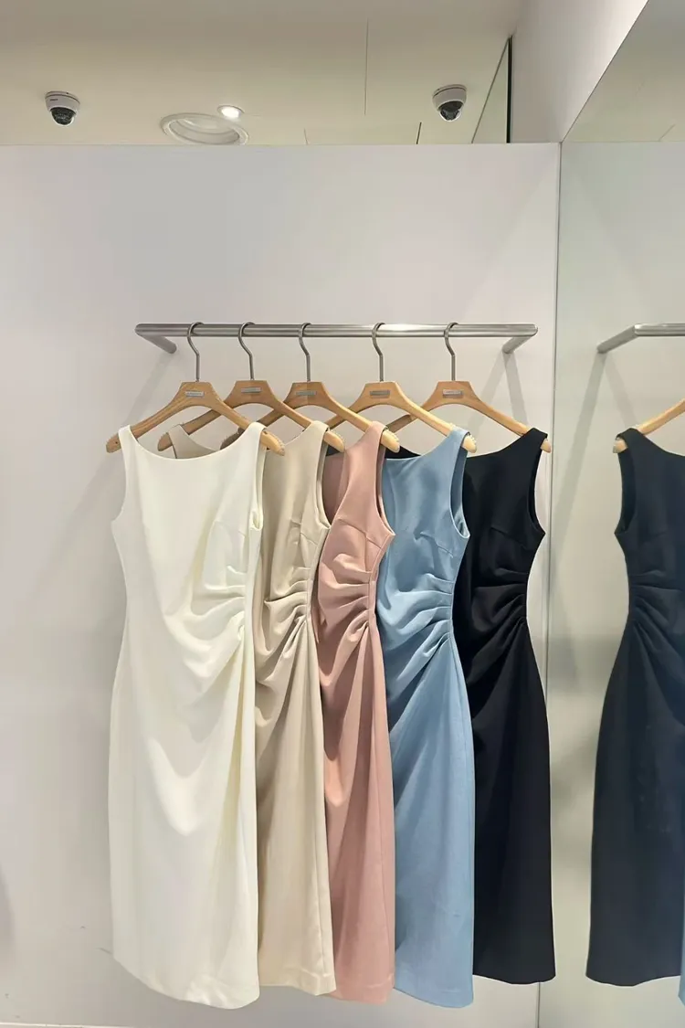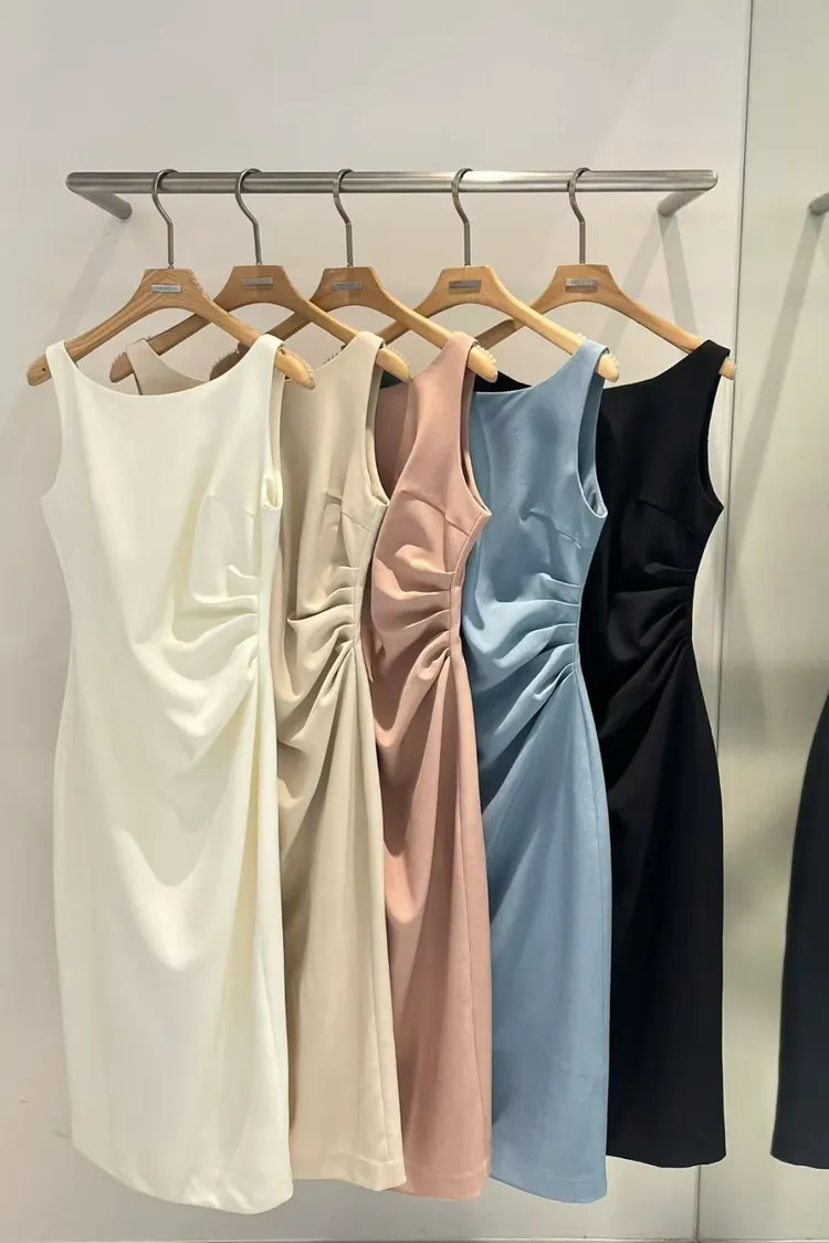 韓國代購 女神比例側收腰抓皺修身連身裙
